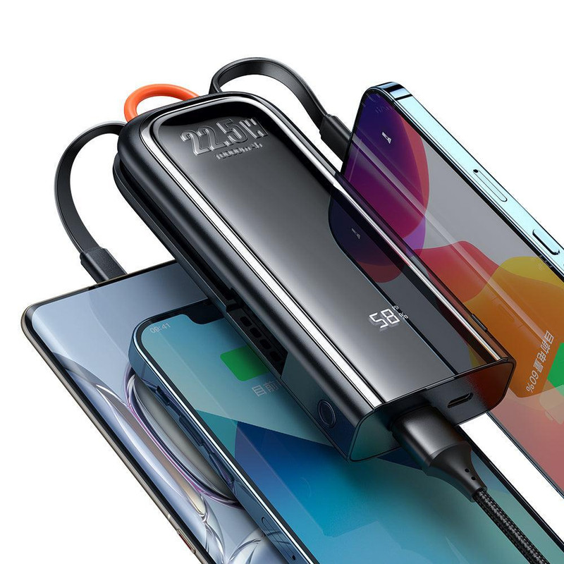 پاوربانک مک دودو مدل Mcdodo MC-116 این امکان را برای شما فراهم میسازد که به طور همزمان 3 دستگاه مختلف را شارژ کنید. دو کابل از نوع Type-C برای گوشیهای اندرویدی و Lightning برای گوشیهای آیفون به پاوربانک متصل شده و علاوه بر آن، یک پورت Type-C و یک پورت Type-A نیز وجود دارد. این پاوربانک قابلیت شارژ سریع را نیز داراست که به لطف توان خروجی 22.5 واتی، شارژ به صورت همگام و موازی صورت میگیرد و فشاری هم بر روی باتری دستگاهها وارد نمیشود.