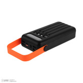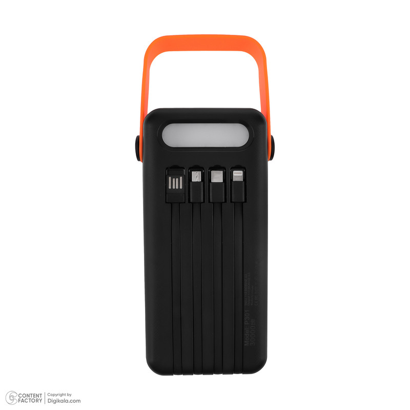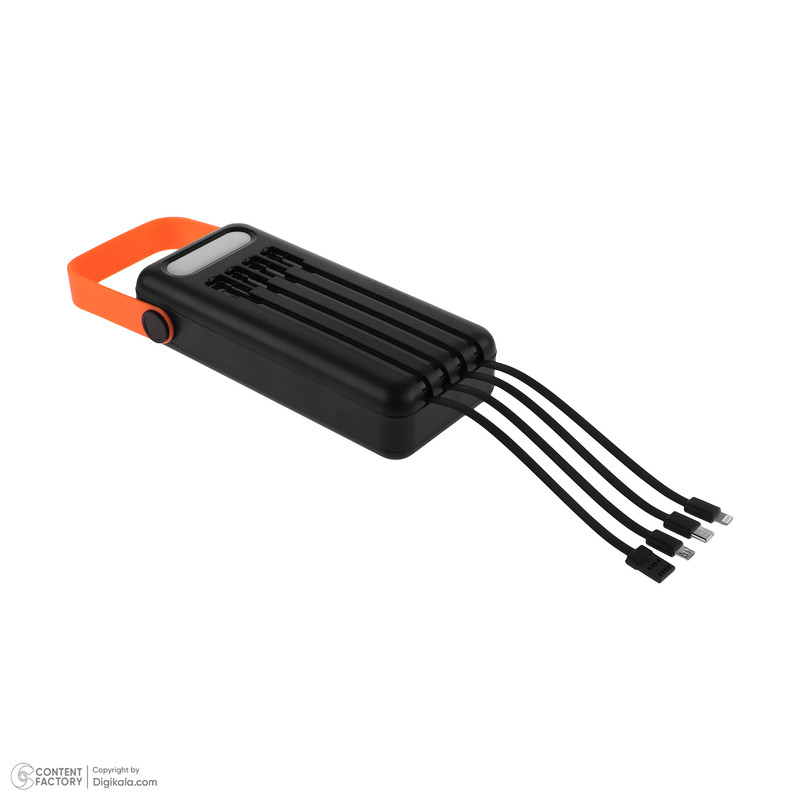 پنج درگاه خروجی این محصول امکان اتصال همزمان چندین دستگاه را فراهم میکند. نشانگر رنگی موجود روی بدنه نیز وضعیت شارژ باقیمانده را بهصورت واضح و ساده نمایش میدهد. این پاوربانک با ابعاد ۱۸۰x۸۰x۴۱ میلیمتر و وزن ۷۱۵ گرم در دسته پاوربانکهای سنگین قرار میگیرد. بدنهی پلاستیکی آن مقاومت مناسبی در برابر ضربه و خطوخش دارد و با توجه به کابلهای متصل به بدنه، نیاز به حمل کابل جداگانه را برطرف میکند.