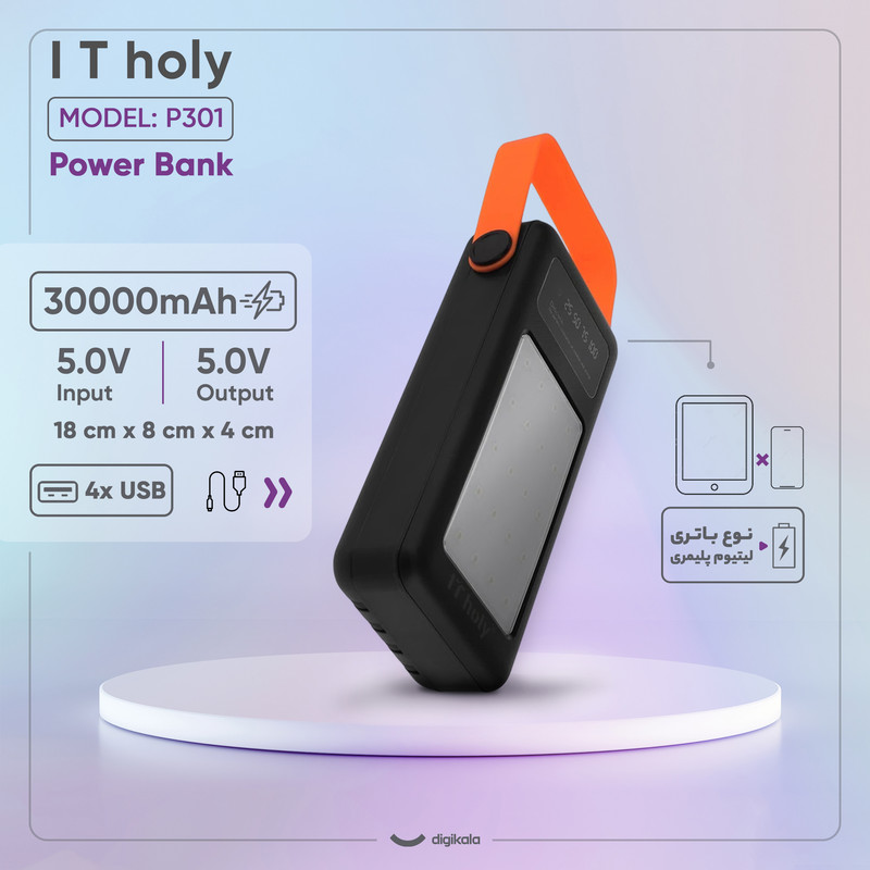 پاوربانک آی تی هالی مدل P301 ظرفیت 30000 میلی آمپر ساعت