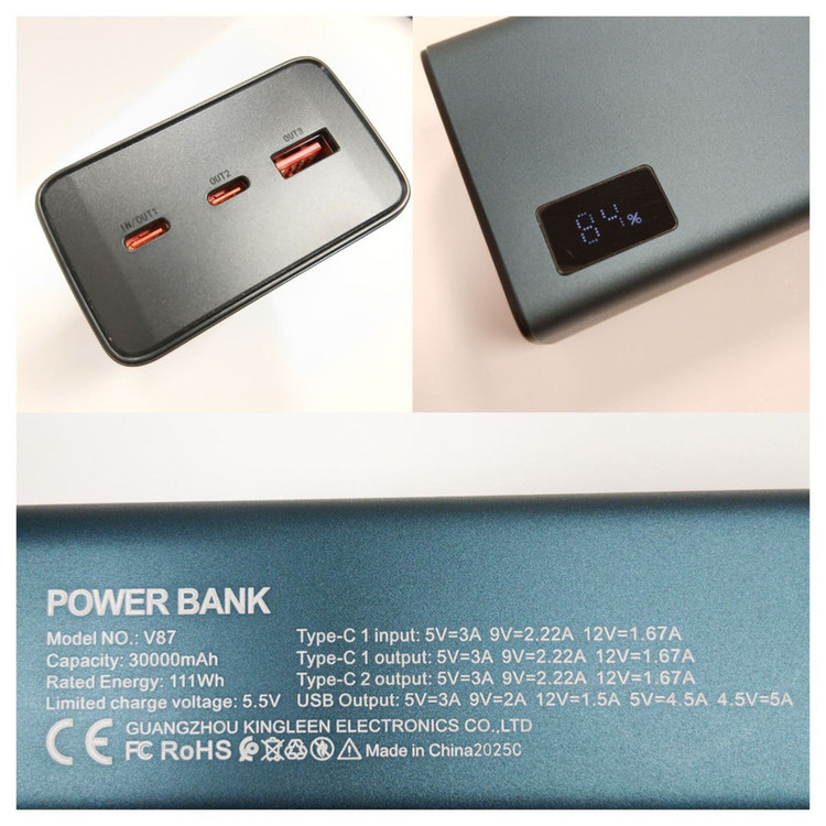 پاوربانک PZX مدل V87 با ظرفیت 30000 میلیآمپر ساعت یک شارژر همراه قدرتمند و مطمئن است که با بدنهای ساختهشده از ترکیب پلیکربنات مقاوم و آلومینیوم ضدحریق در برابر ضربه، حرارت و انفجار ایمنی بالایی دارد. این پاوربانک به فناوری فست شارژ مجهز بوده و از طریق درگاه تایپسی با سرعت بالا شارژ میشود. برای شارژ دستگاهها نیز دو خروجی تایپسی و یک خروجی USB دارد که همگی از شارژ سریع پشتیبانی میکنند. نمایشگر دیجیتال میزان شارژ، سیستم هوشمند کنترل نوسان و ولتاژ و طراحی خوشدست از دیگر ویژگیهای این محصول هستند. ظرفیت بالا و امکانات کامل پاوربانک V87 آن را گزینهای ایدهآل برای سفر، محل کار، دانشگاه و استفادههای روزمره میسازد.