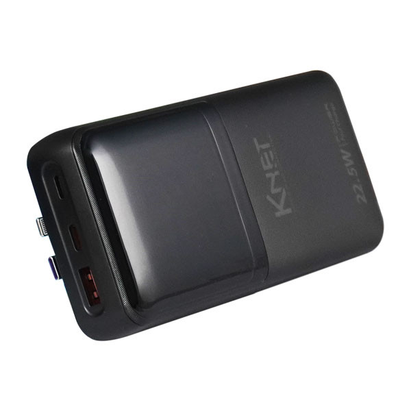 “پاوربانک 20000 کی نت Knet K-PB20000P22“با ویژگیهای کاربردی و طراحی هوشمندانه، به عنوان یک همراه مطمئن در سفرها و روزمرگیها، خود را مطرح میکند.این پاوربانک مدل K-P22 با ظرفیت بالای 20000 میلیآمپر ساعت، این پاور بانک میتواند چندین بار گوشی، تبلت و سایر دستگاههای شما را شارژ کند. این ظرفیت بالا، خیال شما را از بابت تمام شدن شارژ دستگاههایتان در طول روز راحت میکند.پاور بانک کی نت با پشتیبانی از حداکثر سرعت شارژ 22.5 وات، دستگاههای شما را در کمترین زمان ممکن شارژ میکند. این ویژگی، به ویژه در مواقعی که زمان کمی برای شارژ کردن دستگاههایتان دارید، بسیار کارآمد است.این پاور بانک مجهز به سه درگاه خروجی است که امکان شارژ همزمان چند دستگاه را فراهم میکند. علاوه بر این، کابلهای تایپ سی و لایتنینگ تعبیه شده در بدنه پاور بانک، نیاز شما به حمل کابلهای اضافی را برطرف میکند.بدنه این پاور بانک از جنس ABS ساخته شده است که علاوه بر مقاومت در برابر ضربه و خط و خش، وزن مناسبی دارد و حمل آن را آسان میکند. نشانگر LED تعبیه شده روی بدنه، میزان شارژ باقیمانده پاور بانک را به شما نمایش میدهد و از خاموش شدن ناگهانی آن جلوگیری میکند.استفاده از باتری لیتیوم-پلیمری در این پاور بانک، علاوه بر افزایش طول عمر و ایمنی دستگاه، باعث کاهش وزن و ابعاد آن نیز شده است.