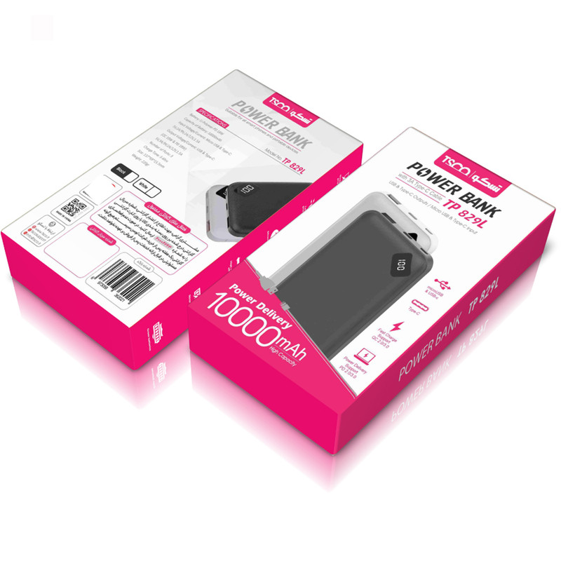 گفتنی است که طراحی مناسب و وزن نسبتا کم TP 829 قابلیت حمل آسان را برای شما فراهم آورده است. شما می توانید از پاوربانک تسکو مدل TP 829 به ظرفیت 10000 میلی آمپر ساعت برای شارژ کردن موبایل و تبلت بهره بگیرید و از بابت تمام شدن شارژ دستگاهتان به دلیل ساپورت از PD2.0/3.0&QC 2.0/3.0 به هیچ وجه نگرانی نداشته باشید.