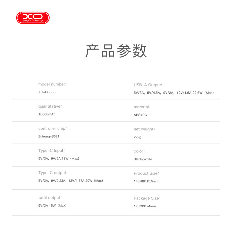 پاوربانک XO-PB308 با ظرفیت واقعی 10000 میلیآمپر ساعت یک منبع انرژی قابل اعتماد برای گوشی، تبلت و سایر دستگاههای دیجیتال شماست. بدنه از ABS + PC مقاوم ساخته شده که هم سبک است و هم در برابر ضربه و خط و خش، دوام بالایی دارد.