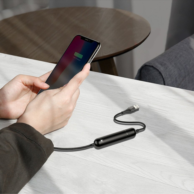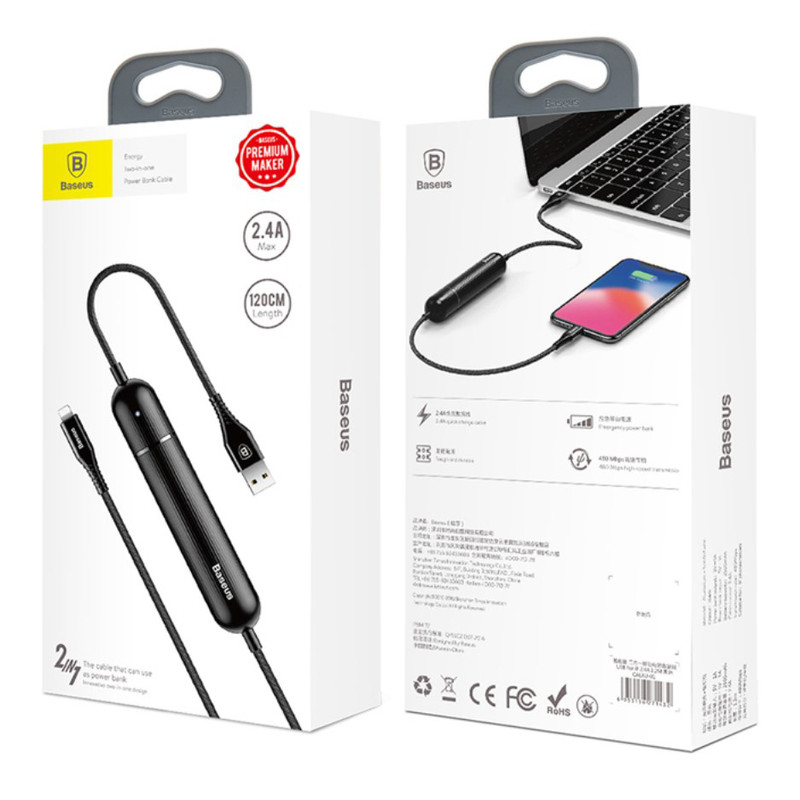 مشخصات فنیپاوربانک 2 در 1 با کابل شارژ 1.2 متری لایتنینگ کابل شارژ متصل به پاوربانک ساخته شده از آلیاژ آلومینیوم شدت جریان 2.4 آمپر مناسب برای شارژ سریع کابل از جنس نایلون در هم تنیده شده مقاوم در برابر خمیدگی وکشیده شدن