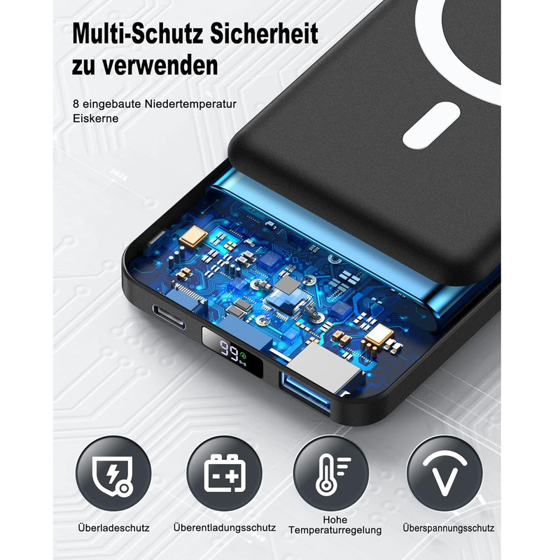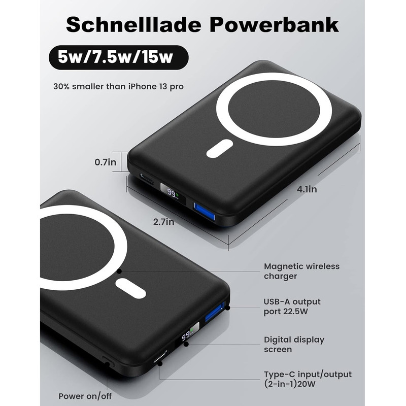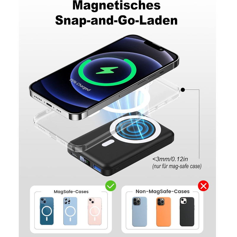 سازگار باپاور بانک Mag-Safe: پاوربانک بی سیم مخصوص سری آیفون 16/15/14/13/12 با فناوری Mag Suction طراحی شده است و از شارژ آیفون 16/12/13/14 بدون قاب گوشی Mag-Safe پشتیبانی می کند. .
