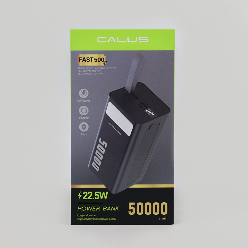 معرفی پاوربانک کالوس مدل FAST500 یک محصول کاربردی با جنس و کیفیت عالی است که با انواع تلفنهای همراه، تبلت، و دستگاههای این چنین، سازگاری دارد. یک پاوربانک قدرتمند باتوان 22.5W وظرفیت 50000 میلی امپر ساعت که با دو درگاه خروجی، امکان شارژ دو دستگاه به طور همزمان را برای شما فراهم میسازد. در گذشته خیلی از ما با این مشکل مواجه بودیم که خارج از خانه با کمبود شارژ تلفن همراه مواجه میشدیم و یافت یک پریز برق برای شارژ گوشی هم کار آسانی نبود. امروزه اما با همهگیری پاوربانکها، اوضاع نسبت به قبل کمی متفاوت است و ما با به همراه داشتن پاور بانک به راحتی میتوانیم گوشی های خود را شارژ کنیم. اولین ویژگی که نظر هر کاربری را جلب میکند ، بی نیازی به حمل کابلهای اضافه میباشد ، زیرا این پاوربانک دارای یک کابل کوتاه ، Type-C، است درون جعبه ، که برای اتصال به پاوربانک میباشد.علاوه بر کابل ، دارای 2عدد پورت USB ، یک عدد پورت Type-C ، یک پورت microUSB برای شارژ موبایل میباشد که از طریق یکی از این پورتها میتوانید پاوربانک را نیز شارژ کنید .در یک طرف آن چراغ قوه که در هنگام شب بسیار کاربردی است قرار داده شده است .و دیگر مزایای این پاور بانک نمایشگر دیجیتال LED است که میزان شارژ باتری را نمایش میدهد. به طور خلاصه اگه بین این همه مدل پاوربانک دنبال یک پاوربانک عالی و با کیفیت مطلوب (از نظر شارژدهی، و..) می گردیید ما این مدل را به شما پیشنهاد می دهیم .