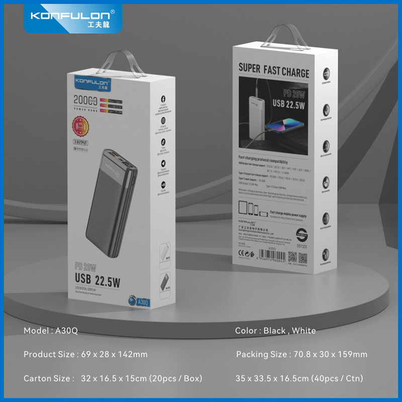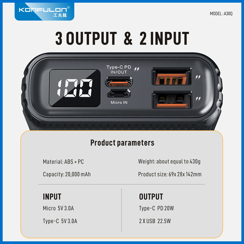 پاوربانک کانفلون مدل A30Q ظرفیت 20000 میلی آمپر ساعت