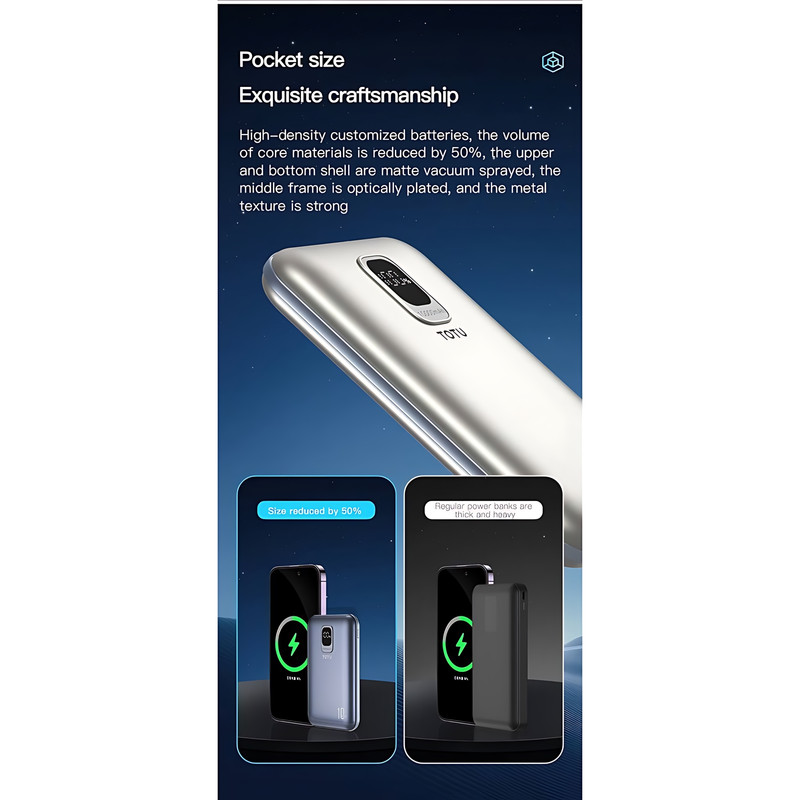 + موارد بیشترپاوربانک TOTU مدل PB-1-W، همراهی بینظیر که با طراحی مینیمال و قدرتمند خود، تجربهای از شارژ پیشرفته و آسودگی را به شما تقدیم میکند. این پاوربانک با ظرفیت 10000 میلیآمپرساعت و بدنهای از جنس PC و ABS، در ابعادی ظریف (113x71x19 میلیمتر) و وزنی سبک (209 گرم) طراحی شده تا بهراحتی در جیب یا کیف شما جای گیرد و در هر لحظه، همراهی قابل اعتماد برای سفر و زندگی روزمرهتان باشد. رنگهای چشمنواز استارلایت و خاکستری، جلوهای از زیبایی مدرن را به این محصول بخشیده و آن را به انتخابی شیک برای هر سلیقهای تبدیل کرده است. PB-1-W با توانایی شارژ همزمان چهار دستگاه، قدرتی بیمانند را در اختیار شما قرار میدهد. از خروجی بیسیم 15 وات برای گوشیهای هوشمند گرفته تا شارژ بیسیم 3 وات برای ساعتهای هوشمند، و همچنین درگاههای USB (تا 22.5 وات) و Type-C (تا 20 وات)، این پاوربانک نیازهای متنوع شما را با انعطافپذیری بینقص برآورده میکند. دو ورودی Lightning (تا 18 وات) و Type-C (تا 18 وات) نیز شارژ مجدد سریع و کارآمد را تضمین میکنند تا همیشه آماده استفاده باشد. مجموع خروجی 5V/3A، کارایی متعادلی را برای شارژ همزمان ارائه میدهد و تجربهای بیوقفه از انرژی به شما میبخشد. برای اطمینان از اصالت و کیفیت محصول، توصیه میکنیم که فقط از فروشندگان معتبر مانند تکنیک تل که سابقه درخشانی در ارائه محصولات باکیفیت دارند خرید کنید. متاسفانه، برخی فروشندگان با قیمتهای غیرمنطقی و پایینتر محصولات های کپی را به بازار عرضه میکنند که کیفیت ضعیفی دارند و میتوانند تجربه شما را تحت الشعاع قرار دهند.pb-1-w این پاوربانک، با سیستم حفاظتی هوشمند 9 لایه، ایمنی دستگاههای شما را در برابر هرگونه خطر، از جمله اضافهبار و نوسانات، تضمین میکند. با استاندارد اجرایی GB/T 24490-2017، کیفیتی مورد اعتماد را به نمایش میگذارد. TOTU PB-1-W فراتر از یک پاوربانک، نمادی از کارایی و زیبایی است. چه در سفر باشید و چه در شلوغی روزمره، این محصول با طراحی جمعوجور و عملکرد برتر خود، همیشه در کنار شماست تا دستگاههایتان را سرزنده نگه دارد. اگر به دنبال همراهی هستید که قدرت، ظرافت و اطمینان را در هم آمیزد، PB-1-W انتخابی است که شایستگی شما را تکمیل میکند؛ محصولی که هر بار استفاده از آن، حس برتری و راحتی را به شما القا میکند.