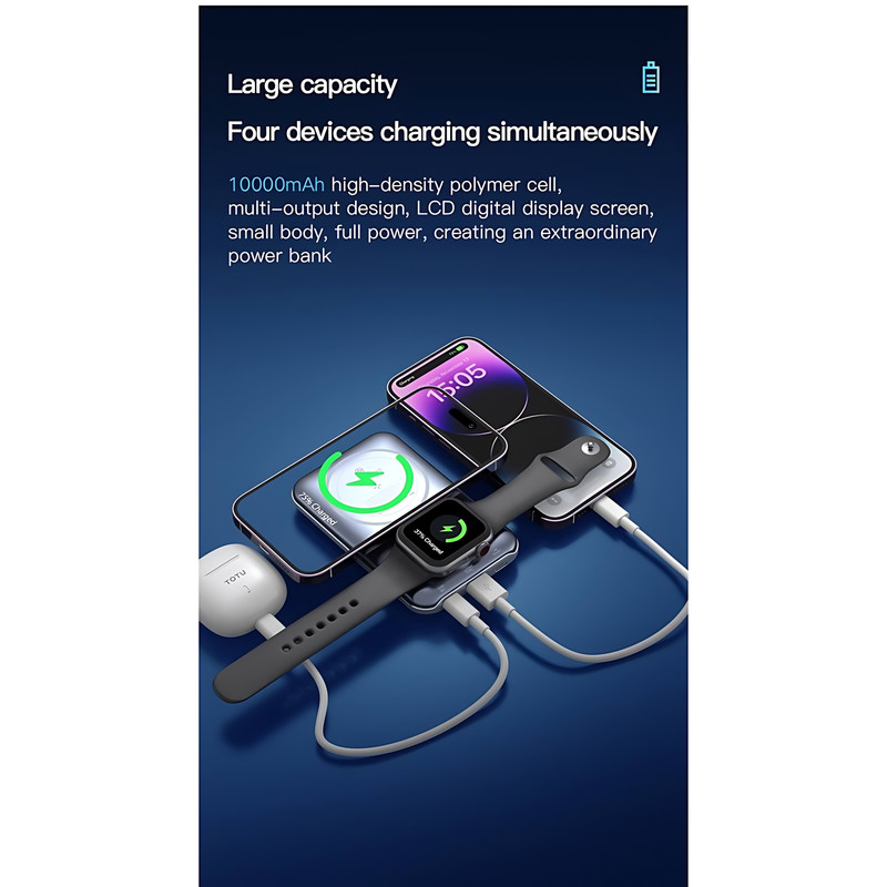 + موارد بیشترپاوربانک TOTU مدل PB-1-W، همراهی بینظیر که با طراحی مینیمال و قدرتمند خود، تجربهای از شارژ پیشرفته و آسودگی را به شما تقدیم میکند. این پاوربانک با ظرفیت 10000 میلیآمپرساعت و بدنهای از جنس PC و ABS، در ابعادی ظریف (113x71x19 میلیمتر) و وزنی سبک (209 گرم) طراحی شده تا بهراحتی در جیب یا کیف شما جای گیرد و در هر لحظه، همراهی قابل اعتماد برای سفر و زندگی روزمرهتان باشد. رنگهای چشمنواز استارلایت و خاکستری، جلوهای از زیبایی مدرن را به این محصول بخشیده و آن را به انتخابی شیک برای هر سلیقهای تبدیل کرده است. PB-1-W با توانایی شارژ همزمان چهار دستگاه، قدرتی بیمانند را در اختیار شما قرار میدهد. از خروجی بیسیم 15 وات برای گوشیهای هوشمند گرفته تا شارژ بیسیم 3 وات برای ساعتهای هوشمند، و همچنین درگاههای USB (تا 22.5 وات) و Type-C (تا 20 وات)، این پاوربانک نیازهای متنوع شما را با انعطافپذیری بینقص برآورده میکند. دو ورودی Lightning (تا 18 وات) و Type-C (تا 18 وات) نیز شارژ مجدد سریع و کارآمد را تضمین میکنند تا همیشه آماده استفاده باشد. مجموع خروجی 5V/3A، کارایی متعادلی را برای شارژ همزمان ارائه میدهد و تجربهای بیوقفه از انرژی به شما میبخشد. برای اطمینان از اصالت و کیفیت محصول، توصیه میکنیم که فقط از فروشندگان معتبر مانند تکنیک تل که سابقه درخشانی در ارائه محصولات باکیفیت دارند خرید کنید. متاسفانه، برخی فروشندگان با قیمتهای غیرمنطقی و پایینتر محصولات های کپی را به بازار عرضه میکنند که کیفیت ضعیفی دارند و میتوانند تجربه شما را تحت الشعاع قرار دهند.pb-1-w این پاوربانک، با سیستم حفاظتی هوشمند 9 لایه، ایمنی دستگاههای شما را در برابر هرگونه خطر، از جمله اضافهبار و نوسانات، تضمین میکند. با استاندارد اجرایی GB/T 24490-2017، کیفیتی مورد اعتماد را به نمایش میگذارد. TOTU PB-1-W فراتر از یک پاوربانک، نمادی از کارایی و زیبایی است. چه در سفر باشید و چه در شلوغی روزمره، این محصول با طراحی جمعوجور و عملکرد برتر خود، همیشه در کنار شماست تا دستگاههایتان را سرزنده نگه دارد. اگر به دنبال همراهی هستید که قدرت، ظرافت و اطمینان را در هم آمیزد، PB-1-W انتخابی است که شایستگی شما را تکمیل میکند؛ محصولی که هر بار استفاده از آن، حس برتری و راحتی را به شما القا میکند.