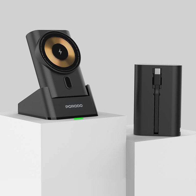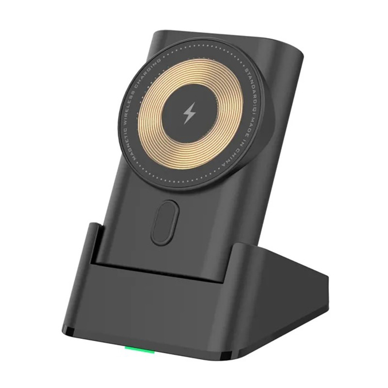 مشخصات فنیظرفیت باتری 5200 میلی آمپر ساعتی / دارای کابل متصل TYPE-C / پشتیبانی از شارژ وایرلس گوشی و ایرپاد / دارای درگاه خروجی و ورودی TYPE-C / دارای استند شارژ