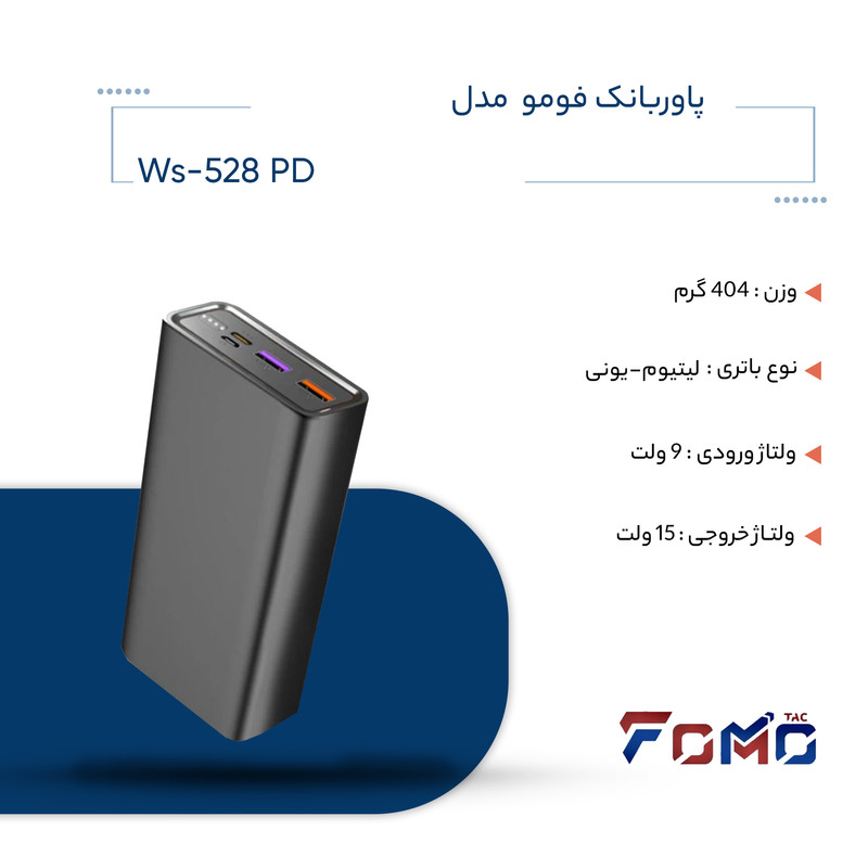 پاوربانک فوموتک مدل Ws-528 PD ظرفیت 20000 میلی آمپر ساعت