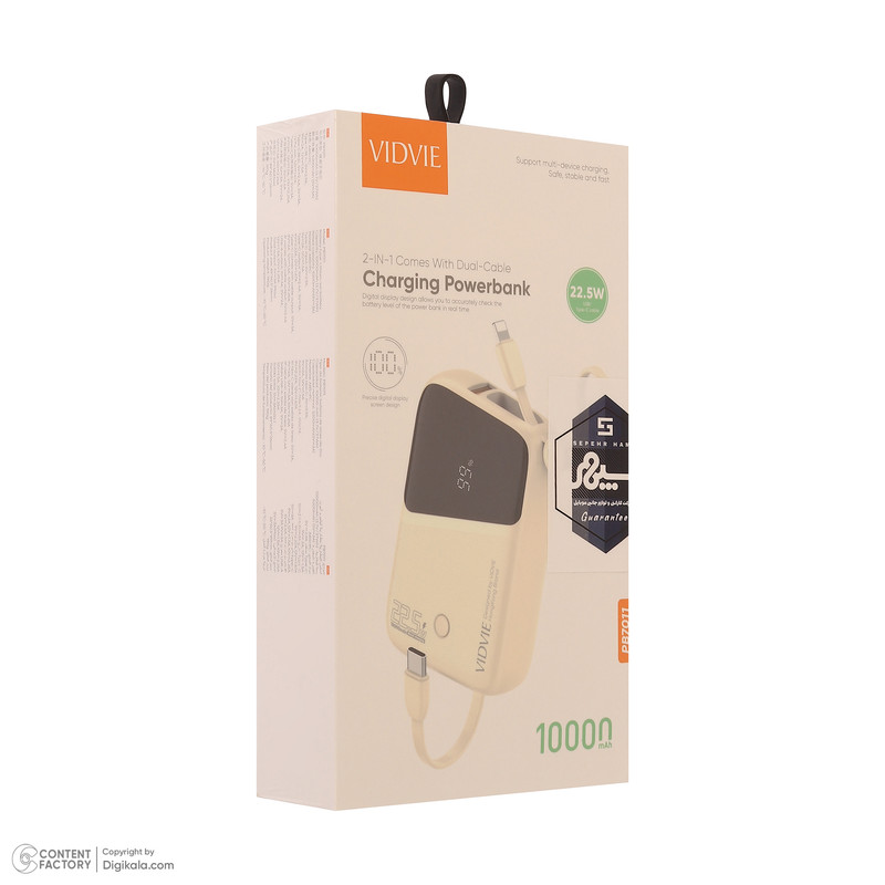 مشخصات فنیپاوربانک با ظرفیت 10000 میلی آمپر با توان 22.5 وات این پاوربانک از فناوری شارژ سریع پشتیبانی می کند. دارای صفحه نمایش برای نشان دادن دقیق میزان باتری