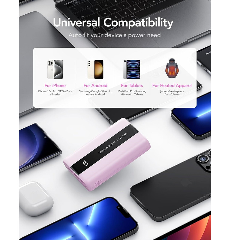 سازگار باانواع دستگاهها از جمله آیفون (سریهای 16/15/14/13/12 و غیره)، گوشیهای اندروید با پورت USB-C، و دستگاههای میکرو