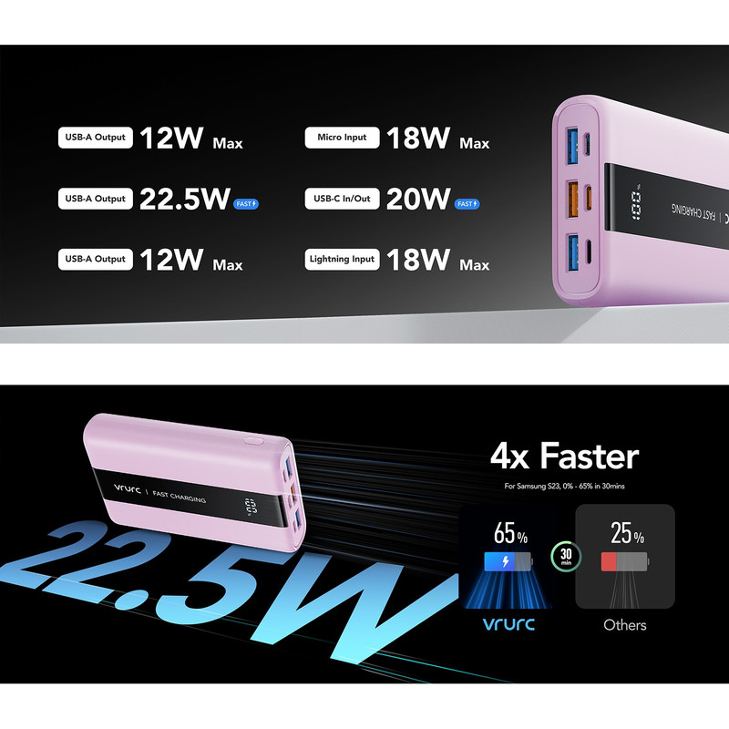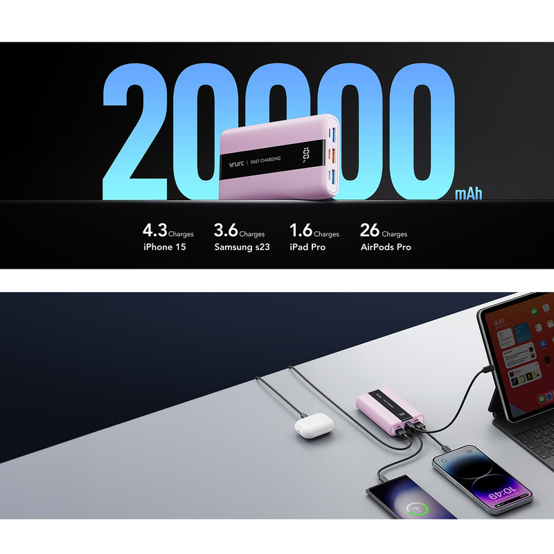 امکانات و قابلیتهاویژگیهای خاص شارژ سریع ۲۲.۵ وات، شارژ سریع ۲۲.۵ وات، ۳ پورت USB و ۳ ورودی، صفحه نمایش دیجیتال، اندازه جیبی، باریک، کوچکترین پاوربانک ۲۰۰۰۰ میلیآمپر ساعتی