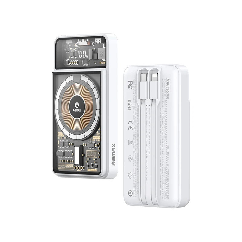 + موارد بیشترپاوربانک ریمکس Magnetic Wireless Fast Charge 22.5W یک پاوربانک بی سیم مگنتی با ظرفیت10000 میلی آمپرساعت با طراحی فانتزی، ظریف، باریک و سبک خود یکی از کوچکترین و با کیفیت ترین پاوربانک های موجود در بازار بحساب می آید. این محصول شارژر بیسیم و پاوربانک را در یک گجت در اختیار کاربر قرار میدهد و با دو کابل متصل به بدنه از نوع Type-C و Lightning از نوع شارژ سریع Fast Charge 22.5W شما را از حمل هرگونه کابل اضافه بی نیاز می کند. تکنولوژی Power Delivery و Quick Charge 3.0 کوالکام و توان خروجی 22.5 وات امکان شارژ تلفنهای همراه با سرعت چند برابر نسبت به شارژرهای استاندارد را فراهم میکند. این پاوربانک قدرتمند امکان شارژ همزمان 4 دستگاه را به کمک ماژول وایرلس و دو کابل متصل لایتنینگ و USB-Cو یک پورت خروجی USB برای شما فراهم کرده است. یک درگاه ورودی پورت Type-C و یک درگاه ورودی لایتنینگ جهت شارژ پرسرعت پاوربانک و یک خروجی وایرلس بیسیم از نوع Fast Wireless جهت شارژ تلفن همراه و انواع دستگاه هوشمند با فناوری Qi با بالاترین سرعت ممکن 15 وات است. این پاوربانک از تکنولوژی مگ سیف (MagSafe) که مختص گوشی های هوشمند که از این تکنولوژی پشتیبانی میکنند باعث میشود شما به راحتی پاوربانک را به پشت گوشی بچسبانید و از قابلیت شارژ وایرلس بهره مند شوید. تعبیه نمایشگر LED بر روی بدنه به منظور نمایش درصد شارژ محصول از دیگر قابلیت های این پاوربانک است تمرکز جدیدترین تکنولوژی ها در این پاوربانک از جمله فناوری مقاومت در برابر اتصال کوتاه، محافظت در برابر گرمای بیش از حد و ولتاژ بیش از حد، حفاظت در برابر جریان اضافه خیال شما را از بابت سلامت گوشی و دستگاه های گران قیمتتان آسوده می کند. این پاوربانک موفق به کسب استاندارد های سلامت و ایمنی محصولات شامل CE / FCC / ROHS شده است. اگر بدنبال یک پاوربانک کوچک و جمع و جور و بیسیم اما پرقدرت هستید این پاوربانک تمامی انتظارات شما را از این بابت برآورده خواهد کرد.