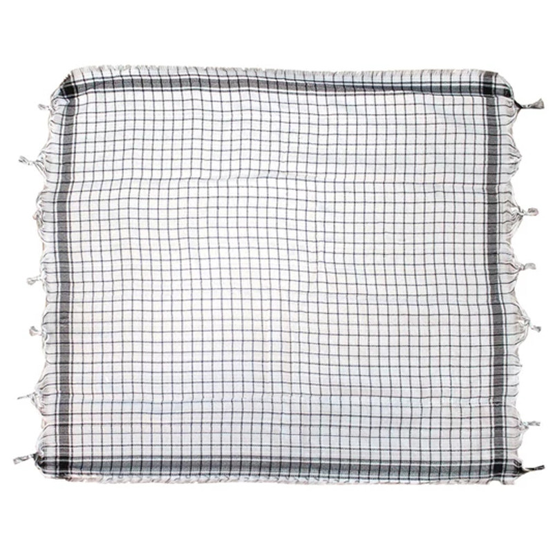 این چفیه از کیفیت خوبی برخوردار است و 80درصد از مواد تشکیل دهنده آن نخ و 20درصد دیگر پلی استر است و در اندازه 100 سانتی متر در 100 سانتی متر تولید شده است