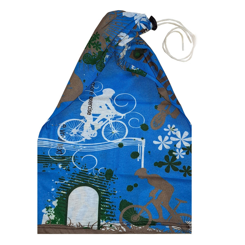 اسکارفی زیبا با قابلیت های متفاوت، که بخاطر داشتن ظاهر اسپرت، هم برای بانوان و هم آقایان قابل استفاده است. در ابتدایی ترین و ساده ترین حالت، شما می توانید از این اسکارف به عنوان مچ بند و تل مو بهره ببرید، این محصول با ظاهر تونلی خود در گردن قرار می گیرد و به عنوان دستمالی زیبا، گردن شما را می پوشاند، در همین حالت با بالا کشیدن آن تا روی بینی به ماسک تبدیل می گردد. با ایجاد یک گره در میانه کار می توانید آن را به کلاه دو لایه ساده تبدیل نمایید، در هنگام ورزش به هد بند تبدیل شده و با کمی بالاتر رفتن در سر یک تل موی زیبا خواهد شد، در همین حالت اگر کمی باز تر شود به دستمال سری زیبا مبدل می گردد، در هنگام کوهنوردی می توانید برای محافظت کامل صورت در مقابل باد و نور خورشید آن را مورد استفاده قرار دهید. علاوه بر این ها، اسکارف طرح دوچرخه سواری می تواند به صورت آستین، نقاب، کلاه کپ، دستمال سر طرح دزد دریایی نیز باشد.تفاوت این محصول با نمونه های دیگر استفاده از پارچه با کیفیت و دوخت دو لبه آن است که این مهم سبب می گردد لبه اسکارف پیچ نخورد؛ همچنین اضافه شدن یک بندینک در یکی از دو سر محصول می باشد که قابلیت های دیگری به اسکارف اضافه می نماید.
