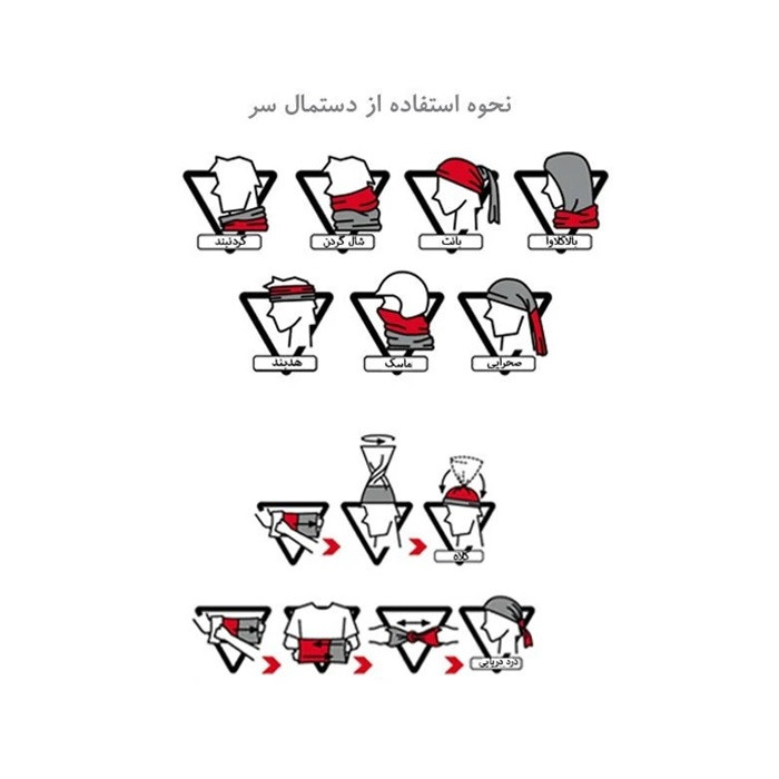 سایر توضیحات : - مناسب برای کمپینگ و ورزش هایی مانند اسکی و کوهنوردی. - ۱۰۰ درصد پلی‌استر فیبر. - بسته شدن به ۹ حالت مختلف. - قابل استفاده زیر کلاه کاسک. -دو سر این محصول ساده میباشد و دور دوزی ندارد. - مناسب برای آقایان و بانوان.