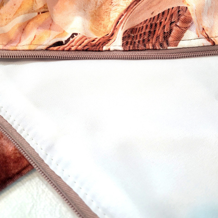 سایر توضیحات: پارچه هازان درجه یک / دارای آستر داخلی / دورو طرح دار/ دارای زیپ درجه یک در سه طرف که به راحتی باز و بسته میشود/ قابل شستشو با مواد شوینده در ماشین لباسشویی به دفعات