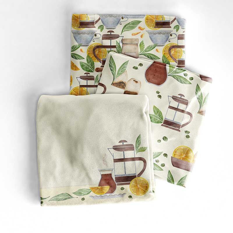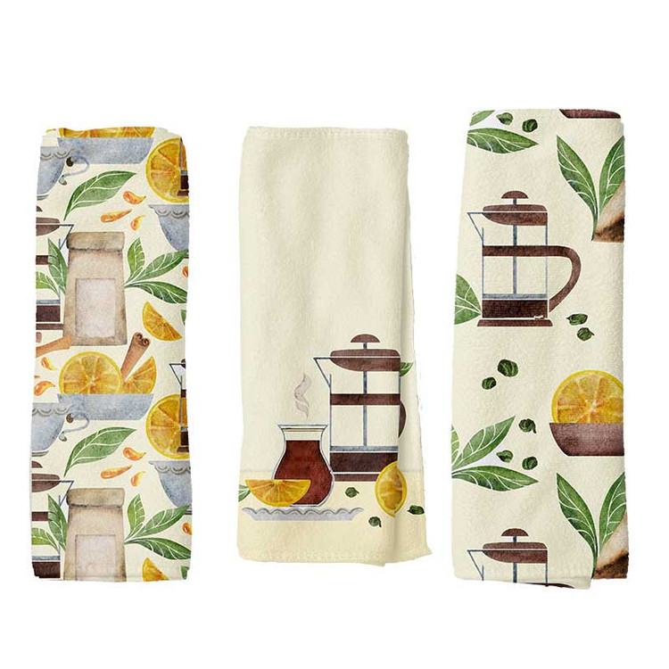 دستمال آشپزخانه طرح چای و لیمو کد Q3DA1068-69-70 مجموعه سه عددی