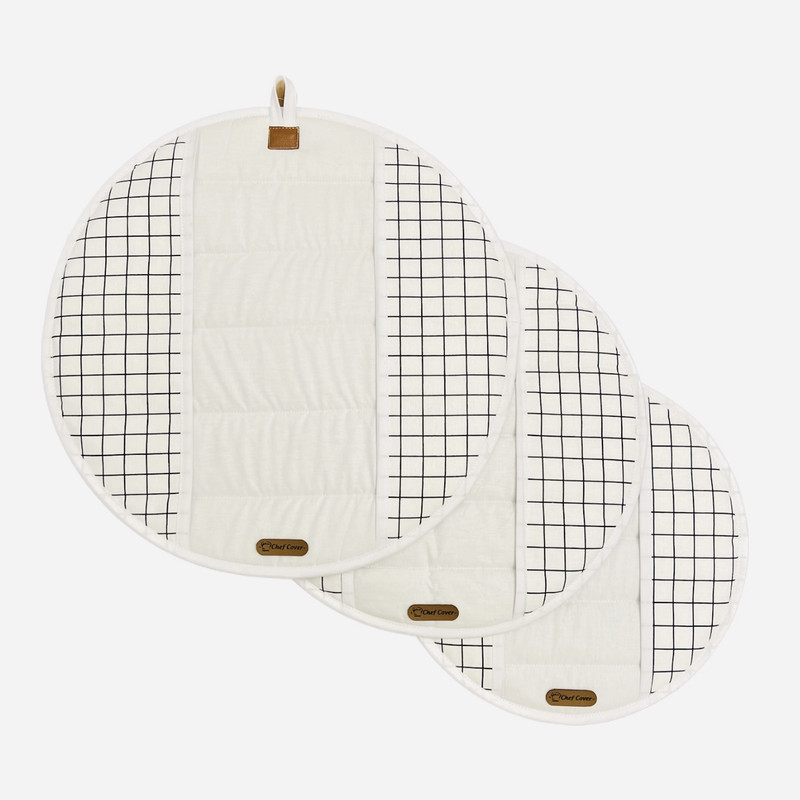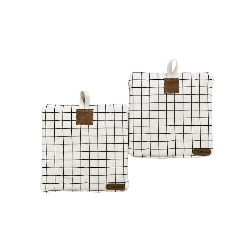 سرویس آشپزخانه 11تکه شف کاور مدل کراس از پارچه تمام نخ ترک و الیاف مرغوب تهیه شده است که شامل یک عدد پیشبند، یک عدد نمگیر ظروف سایز 50 در 70، سه سایز دمکنی، یک جفت دستگیره، یک جفت دستکش فر و یک جفت دستمال آشپزخانه میباشد.