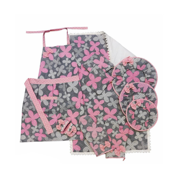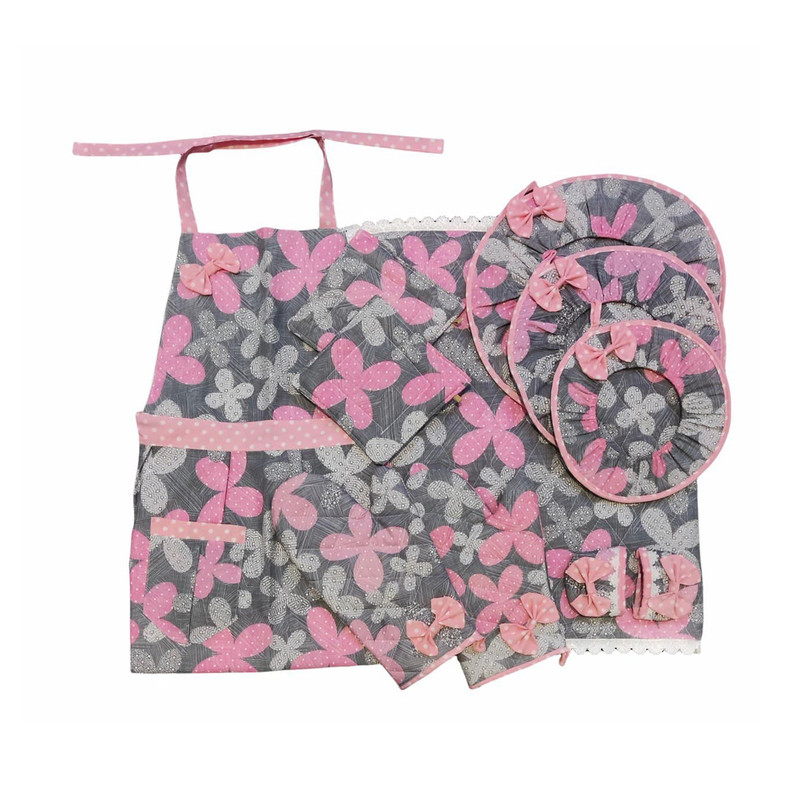 شامل: آبگیر کنار سینک , دو عدد دستگیره , دو عدد دستگیره قابلمه , سه عدد دمکنی , یک جفت دستکش فر , یک عدد پیشبند