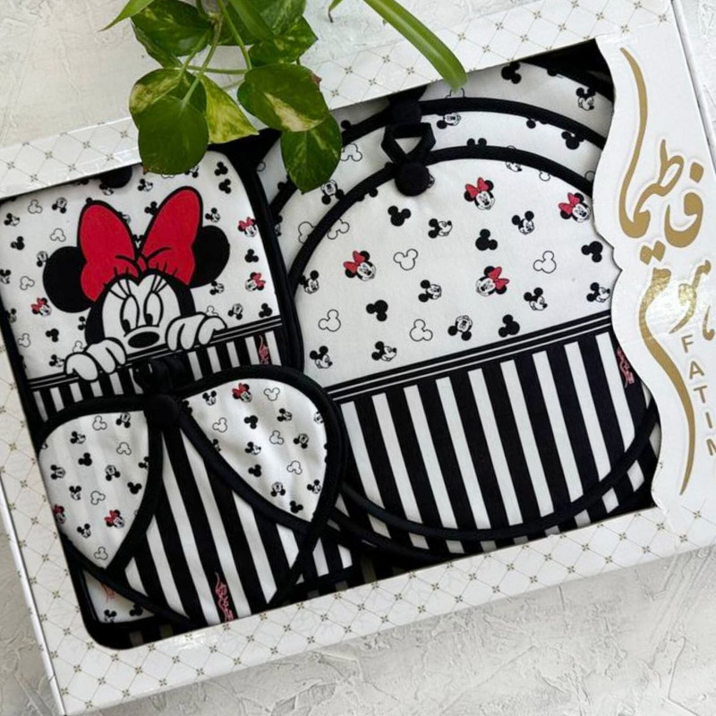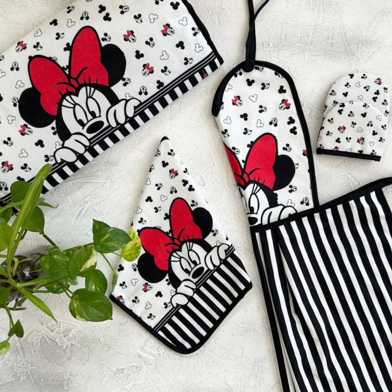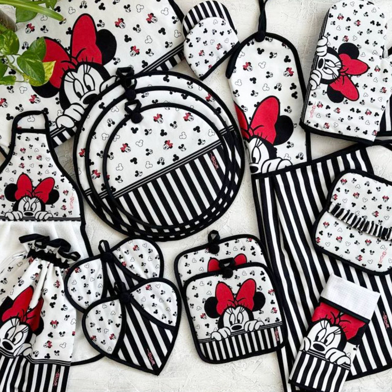 شامل: سه عدد دمکنی , یک جفت دستکش فر , یک عدد کیسه سبزی , یک عدد پیشبند , یک عدد حوله آشپزخانه , دو عدد دستگیره تاوه , آبگیر کنار سینک , دو عدد دستگیره قابلمه , دو عدد دستگیره