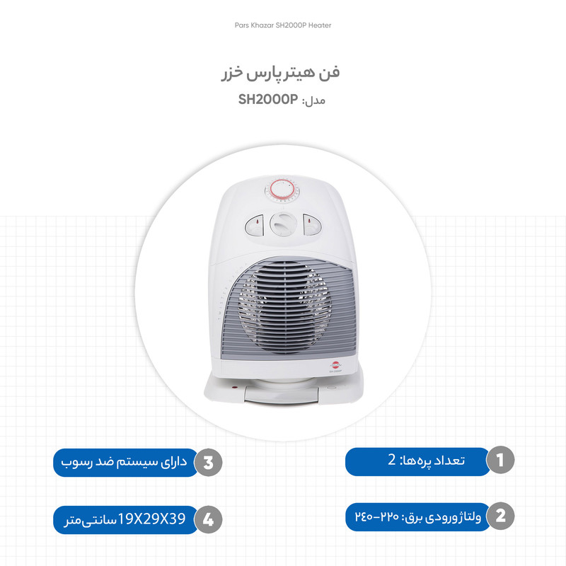 فن هیتر «پارس خزر» مدل «SH2000P» دستگاهی است کاربردی برای آنها که میخواهند سریع گرم شوند. این بخاریبرقی علاوه بر کارآیی بالا، بسیار هم زیباست. بدنهی دستگاه از جنس پلاستیک بسیار باکیفیت است که در صورت کثیفشدن بهسادگی نیز تمیز میشود؛ البته حتما باید دستگاه را از برق جدا کرد. حالت بخاری این دستگاه، در دو قدرت فعالیت کرده و المنتهای داخلی را داغ میکند. فن داخلی باعث میشود تا هوای داغشده به خارج دستگاه منتقل شود. ترموستات دستگاه که در شش حالت درجهبندی شده، بهصورت پیچ تنظیم روی دستگاه و بین دکمههای فعالکردن المنتها تعبیه شده است. درصورتیکه دکمههای روشنشدن المنتها در حالت خاموش باشد، دستگاه بهعنوان یک فن یا پنکه عمل میکند و حرارتی ایجاد نمیکند. از قابلیتهای مهم فن هیتر پارس خزر مدل SH2000P، قابلیت چرخش دستگاه به طرفین است تا بهاینترتیب باد به تمای جهات پخش شود؛ البته زاویهی چرخش محدود است. حالت چرخش را میتوان با دکمهای در قسمت پایینی دستگاه فعال یا غیرفعال کرد. در قسمت پایینی و میانی دستگاه دکمهی خاموش و روشن اصلی دستگاه در نظر گرفته شده است تا درصورتیکه دستگاه روی میز بود، با دست و در مواردی که دستگاه روی زمین قرار داشت، بهصورت پدالی با پا خاموش یا روشن شود. در پشت دستگاه فضایی تعبیه شده است و زمانی که از دستگاه استفاده نمیشود، سیم برق در آن محل پیچیده میشود تا مرتب باشد. در قسمت بالایی این فن هیتر، تایمری نیز در نظر گرفته شده است که توسط آن میتوان زمانبندی فعالیت دستگاه را تعیین کرد. پارس خزر تولید و عرضهکنندهی لوازمخانگی برقی است که بهخوبی شناخته شده است و کاربران محصولات این شرکت معتبر همواره از محصولاتش به نیکی یاد میکنند.