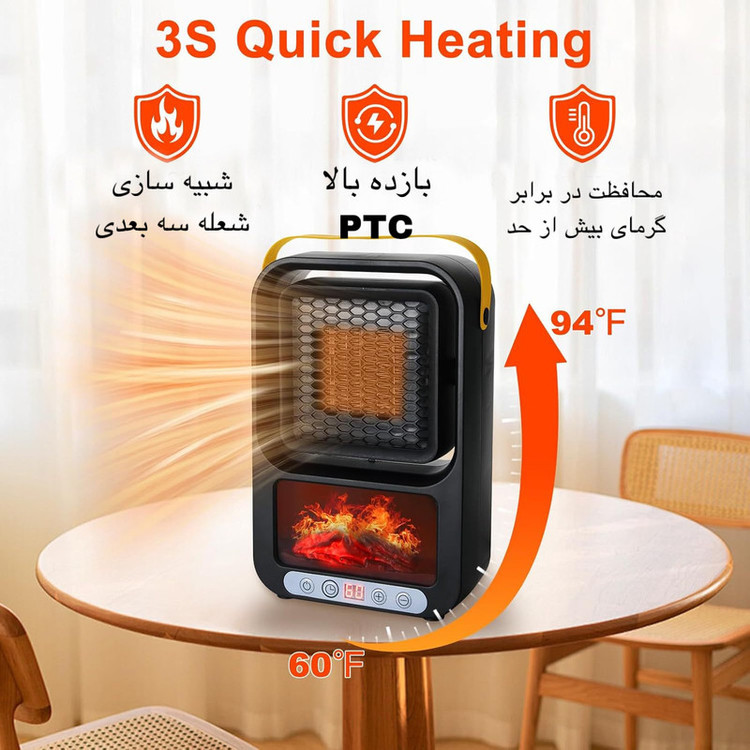 فن گرمایشی(هیتر) مدل FAN HEATER وسیله ای کارآمد با طراحی زیبا مناسب جهت گرم کردن خانه و اتاق شما در فواصل سرد سال می باشد.همچنین قابلیت تنظیم دما به دمای مورد نظر شما و تایمر هوشمند ۱۲ ساعته از جمله خصوصیات ممتاز این دستگاه می باشد.
