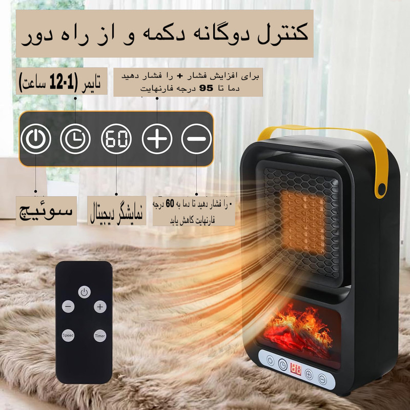 فن گرمایشی(هیتر) مدل FAN HEATER وسیله ای کارآمد با طراحی زیبا مناسب جهت گرم کردن خانه و اتاق شما در فواصل سرد سال می باشد.همچنین قابلیت تنظیم دما به دمای مورد نظر شما و تایمر هوشمند ۱۲ ساعته از جمله خصوصیات ممتاز این دستگاه می باشد.