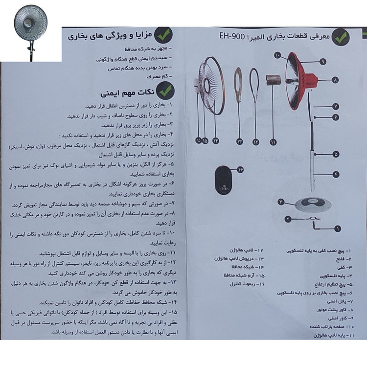 بخاری برقی المیرا طرح پنکه مدل EH-900