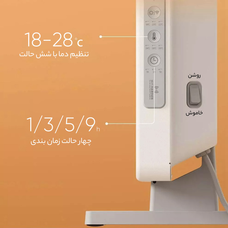 بخاریبرقی هوشمند شیائومی Mi Smart Space Heater S یک وسیله بسیار ساده و کارآمد است که به هیچ عنوان آلودگی سوختهای فسیلی را نداشته و ایمنی بیشتری هم نسبت به مدلهای بخاری گازی یا نفتی دارد. این بخاریبرقی هوشمند با حداکثر توان گرمایشی 2200 وات بهسرعت، محیط را با مساحت فضای 20 تا 46 مترمربع را گرم میکند. این بخاریبرقی در 6 سطح (از 18 درجه تا 28 درجه سانتیگراد) قابلیت تنظیم دمای گرمایشی دارد که بهصورت دستی یا کنترل هوشمند تنظیم میشود. این بخاری را از طریق گوشی هوشمند خود، بهراحتی و با نصب اپلیکیشن Mi Home، بهصورت بیسیم با وای فای، را کنترل و مدیریت کنید. این بخاریبرقی، مجهز به قفل کودک و دسته آویز لباس است. همچنین این محصول مجهز به خاموش شدن بهصورت خودکار است و سنسورهای محافظت در برابر گرمای بیشازحد، در آن تعبیه شده است. ویژگیهایی از قبیل: جابهجایی راحت، اندازه کوچک، سادگی در طراحی ساخت و . . . باعث شده است که این بخاریبرقی شیائومی جایگزین مناسبی برای بخاریهای گازی باشد.