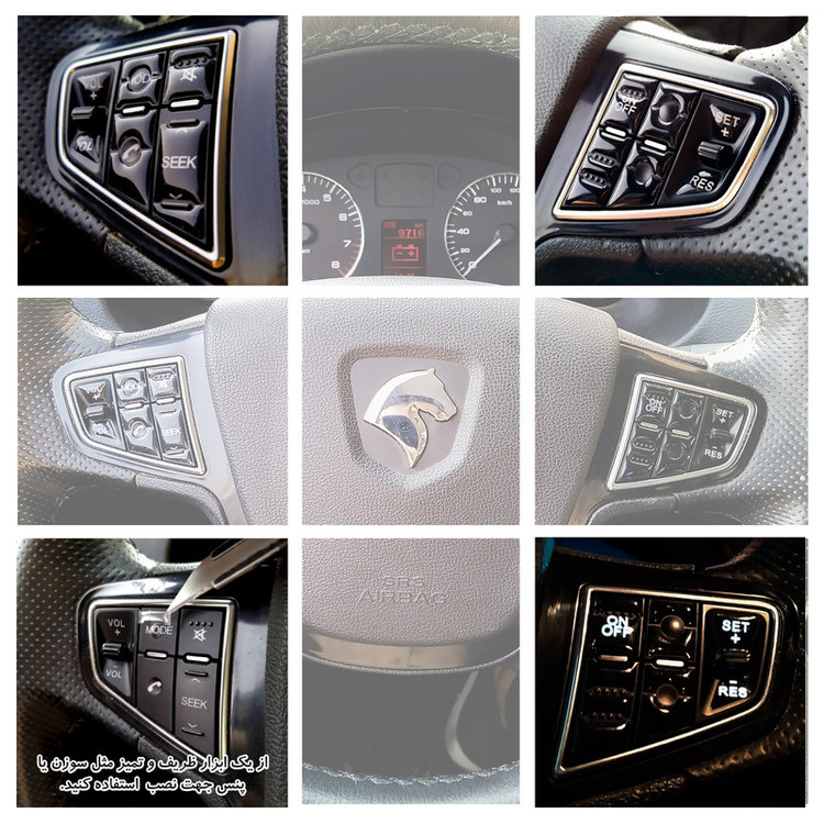 با تولید اولین محافظ کلید ها برای فرمان کروز پژو توسط مجموعه آرسی زد اسپرت در ایران بازخورد و کیفیت و رضایت را از مشتریان خاص پسند خود جلب کرد. از این رو برای سایر خودرو ها هم در مسیر تولید قرار گرفت. محافظ کلیدهای فرمان آرسی زد اسپرت مدل Dena401، یک مجموعه شامل 21 قطعه محافظ برای کلیدهای فرمان خودرو دنا و سورن و تارا و سایر فرمان های مشابه است. این محافظها با طراحی دقیق کلیدهای فرمان دنا و سورن و تارا تولیدشده که به صورت کریستال برجسته، بیرنگ و شفاف میباشند. با استفاده از محافظ کلیدهای فرمان دنا و سورن و تارا میتوانید کلیدهای فرمان خودرو خود را بهصورت براق و جذاب نگهدارید و از خراشیدگی و فرسایش حروف و اشکال روی کلیدها جلوگیری کنید. نصب این محافظها بسیار آسان است و با استفاده از چسب بیرنگ پشت کریستالها، کافی است آنها را بر روی کلیدهای مربوطه بچسبانید. این محافظها با تأثیرات نوری شبیه به عدسی لنز، حروف روی کلیدها را بزرگتر، خواناتر، و روشنتر نشان میدهند. محافظهای دنا و سورن و تارا دارای خصوصیاتی همچون ضد حرارت و ضد خط و خش بوده و برای استفاده طولانیمدت مناسب هستند. این محافظها باعث حفظ زیبایی و کیفیت رنگ خودرو و کاهش نیاز به تمیزکاری مکرر میشوند. بنابراین، محافظ کلیدهای فرمان آرسی زد اسپرت Dena401 مناسب برای دنا و سورن و تارا است.