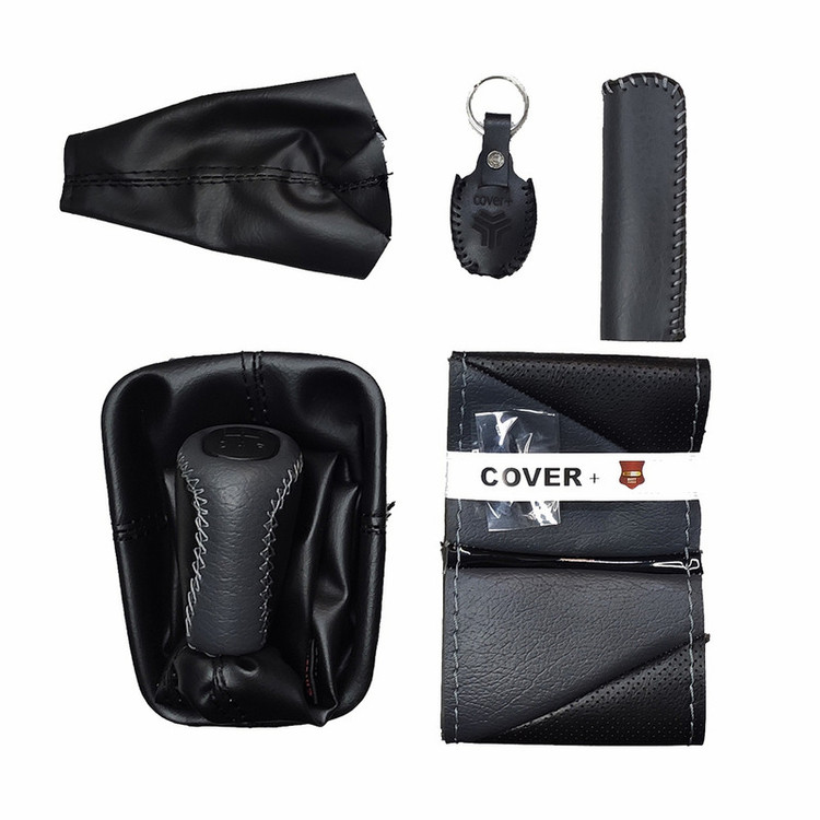 روکش فرمان کاور پلاس مدل PRLUXE-GRY به همراه سردنده و گردگیر و روکش ترمز دستی و کاور سویچ مناسب برای پراید