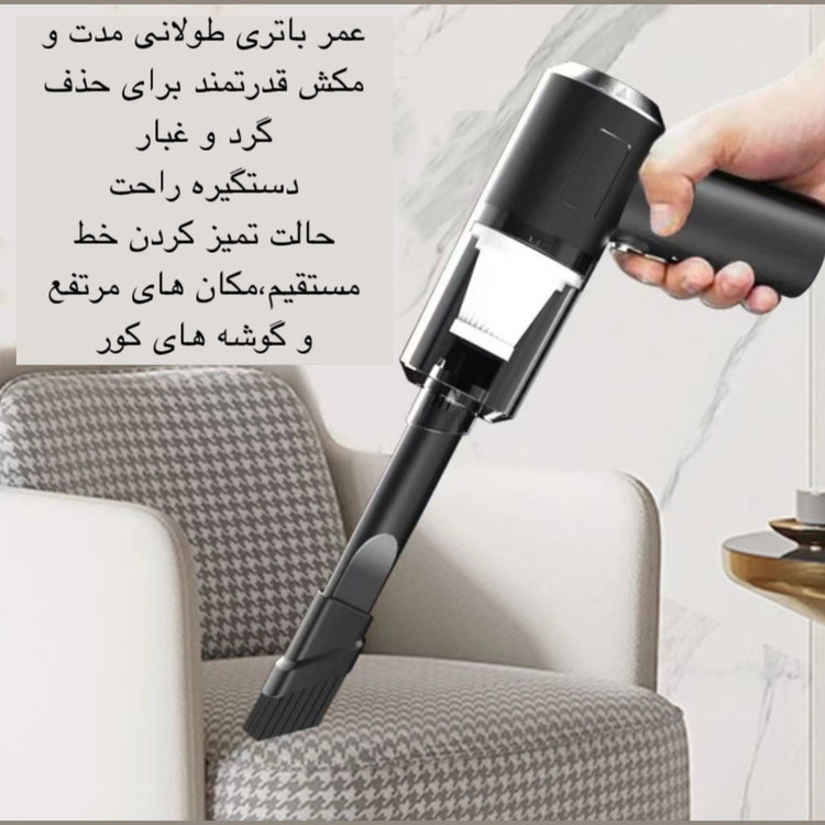 سایر توضیحاتموتور پر قدرت- دارای مکش و دمش دو منظوره- دارای فیلتر قابل شست وشو- مناسب برای تمیز کردن فضاهای باریک و عمیق/صندلی و مبل/صغحه کلید رایانه/جداره پنجره/کشو و کمد و غیره-