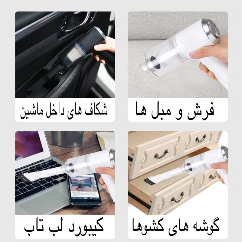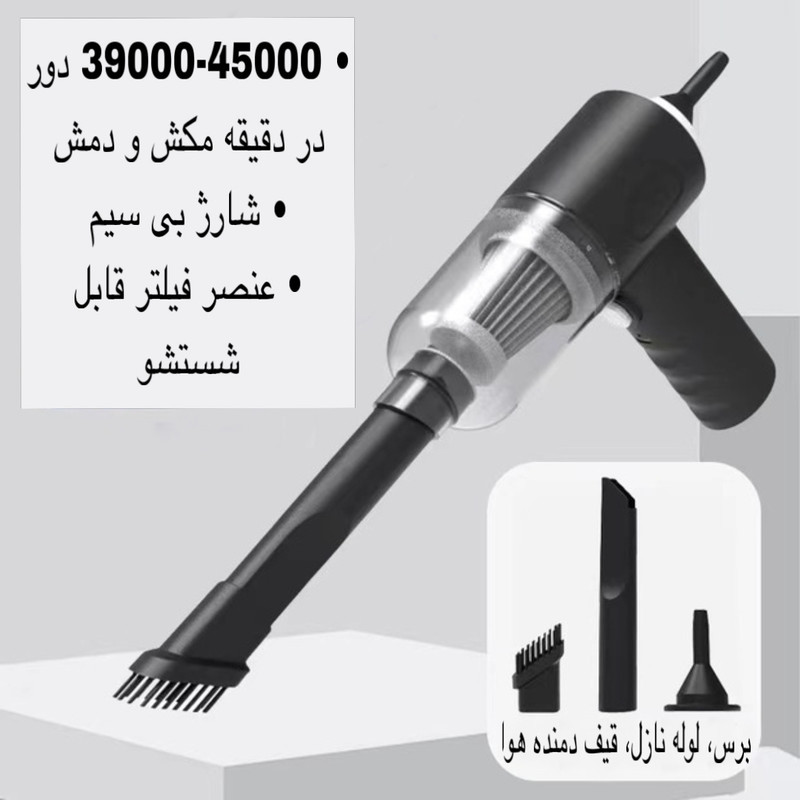 سایر توضیحاتموتور پر قدرت- دارای مکش و دمش دو منظوره- دارای فیلتر قابل شست وشو- مناسب برای تمیز کردن فضاهای باریک و عمیق/صندلی و مبل/صغحه کلید رایانه/جداره پنجره/کشو و کمد و غیره-