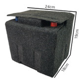 این محافظ باتری مناسب باتری های 50 آمپر بزرگ و 55 آمپر و 60 آمپر با ابعاد ( طول : 24cm عرض : 18cm ارتفاع : 19cm ) می باشد.