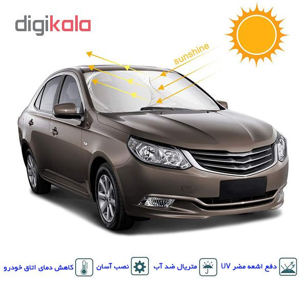 آفتاب گیر شیشه های جلو و عقب خودرو محصولی مناسب جهت جلوگیری از ورود اشعه مضر UV به درون خودرو و خنک نگه داشتن و استفاده بهینه از کولر اتومبیل در روزهای گرم می باشد. متریال انتخاب شده در این محصول به گونه ای است که در برابر نور خورشید بسیار مقاوم بوده و اجازه نمی دهد حتی کمترین نور مضری به درون اتاق خودرو نفوذ کند. فنرهای دور تا دور آفتاب گیر به صورت عمومی جهت استفاده در همه انواع خودرو ها طراحی و تولید شده که این امر باعث قرار گرفتن دقیق آفتابگیر در فریم شیشه خودرو می شود. دوخت دور تا دور فنر به صورت دو لایه انجام شده تا طول عمر محصول را بالا برده و بتوان آفتابگیر را در دفعات بسیار زیادی استفاده کرد. با نصب این محصول از ورود گرما و اشعه uv مضر خورشید که باعث آسیب رساندن به خودرو شما می شود، جلوگیری کنید. این محصول به راحتی قابل جمع شدن است و می توانید آن را در کاور مخصوص جهت جای گیری کمتر در کیف صندلی عقب خودرو نگهداری کنید.