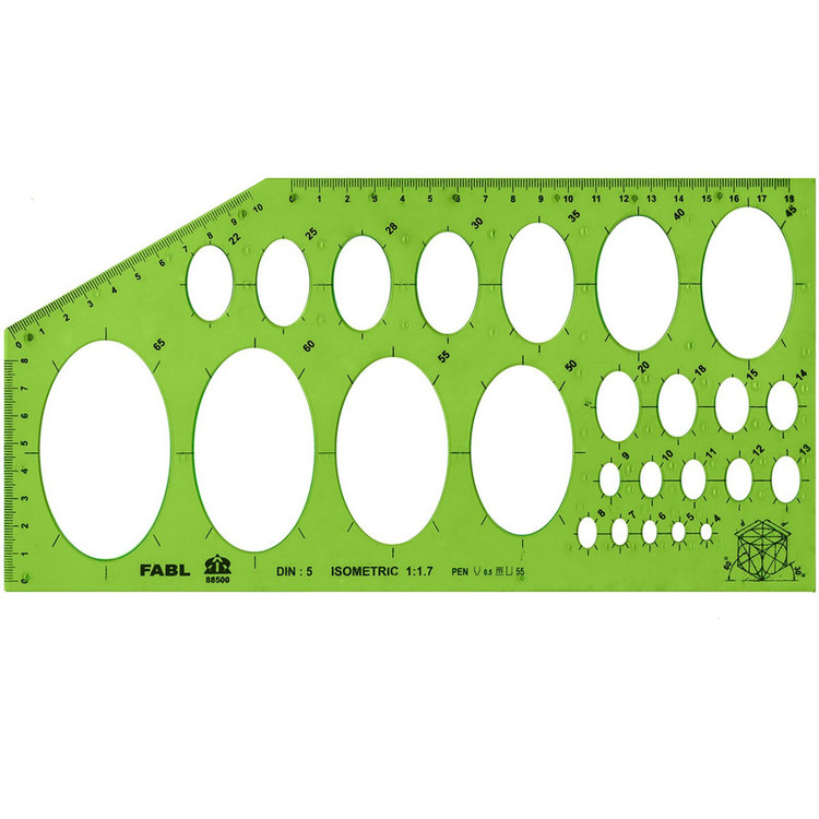سایر توضیحات- مناسب برای نوشتافزار با نوک 0.5 میلیمتر - ساخته شده از پلاستیک نشکن - مناسب برای ترسیم بیضیهایی با قطر 4 تا 65 میلیمتر
