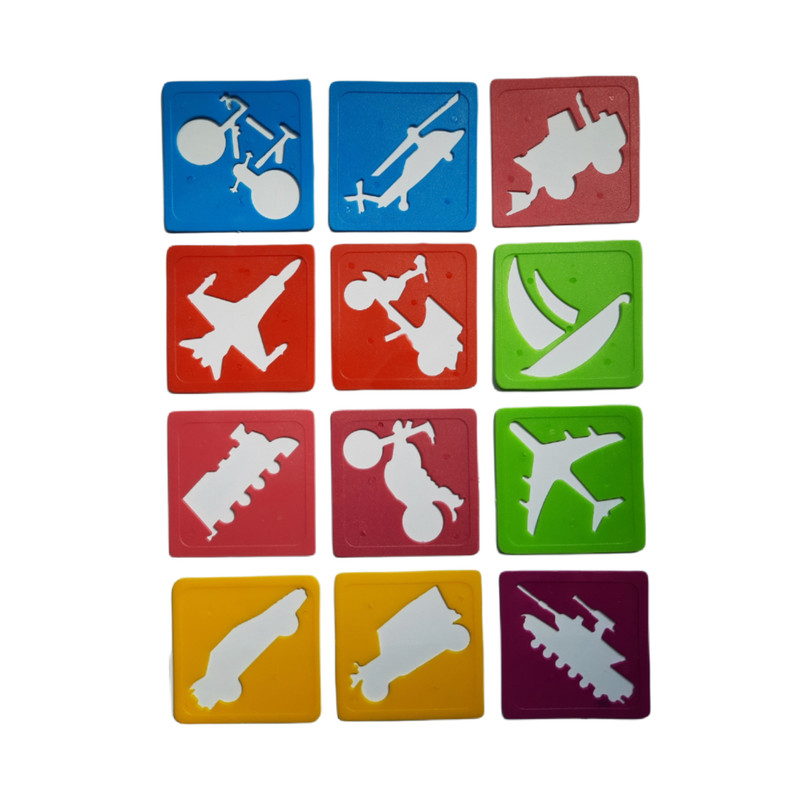 مجموعه شابلون وسائط نقلیه شامل 12 قطعه شابلون 7x7 سانتی متر جهت طراحی شکل انواع وسیله نقلیه می باشد. شابلون وسائط نقیله رسام تحریر موجب توسعه مهارت های نقاشی، رنگ آمیزی، حرکتی و همچنین پرورش قوه تخیل، تفکر منطقی و خلاقیت در کودکان می شود. این شابلون ایده آل برای ابزارهای مختلف نقاشی و رنگ آمیزی مانند مداد رنگی، آبرنگ و غیره، یک هدیه عالی و جالب برای کودکان است.این شابلون که از مواد اولیه پلاستیک نو تولید شده با قابلیت انعطاف مناسب و دوام بالا قابل شستشو و بارها استفاده مجدد می باشد.