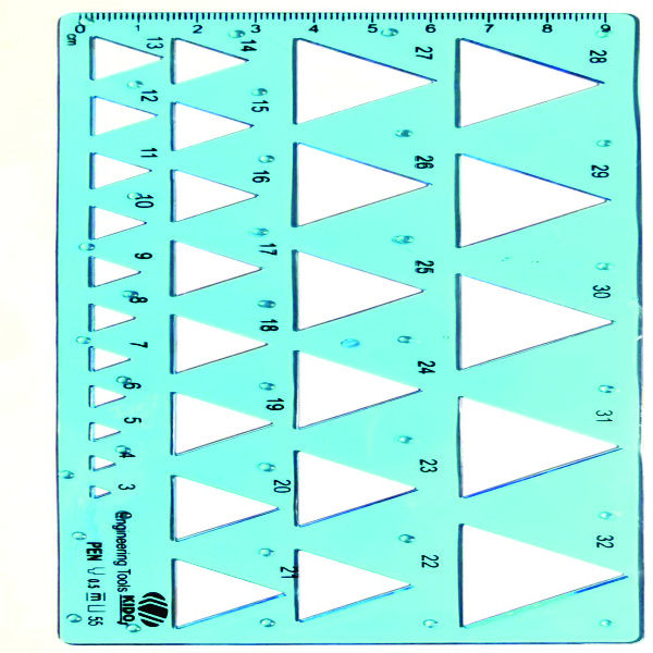 شرکت کیدوز مفتخر به ارائه شابلون مثلث میباشد با جنسی شفاف و با کیفیت که به وسیله ان میتوان مثلث هایی به اضلاع 3 تا 32 میلی متر را ترسیم نمود و مدرجی هم در کنار شابلون ایجاد شده است