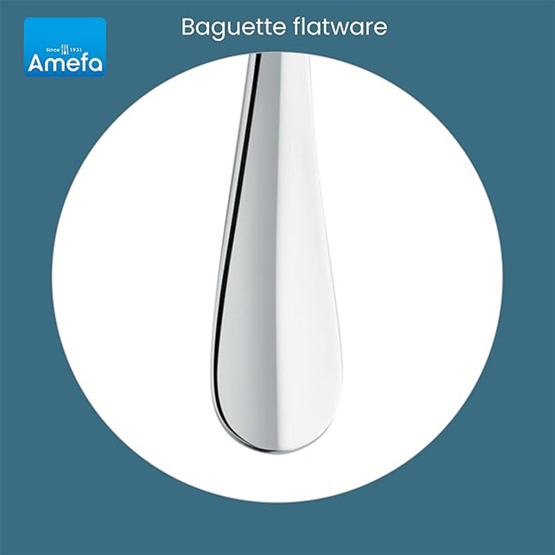 سرویس 24 پارچه Amefa از جنس استیل می باشد که مشتمل بر: 6 عدد قاشق غذاخوری ، 6 عدد چنگال غذاخوری ، 6 عدد کارد غذاخوری ، 6عدد قاشق چای خوری می باشد که ابعاد بسته بندی این محصول به طول 35 سانتیمتر ، عرض 27 سانتیمتر و ارتفاع 5 سانتیمتر می باشد که از بهترین متریال ساخته شده است .