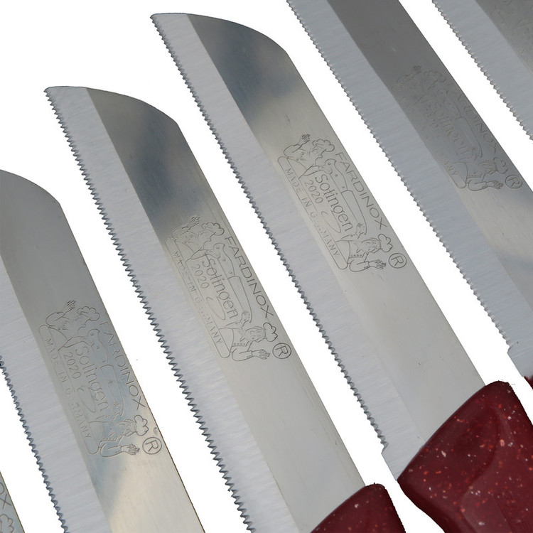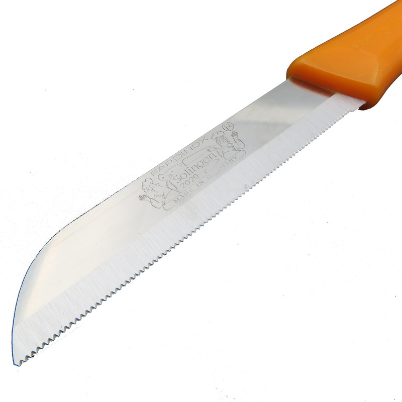 یکی از بهترین کارد های موجود در بازار را به شما معرفی میکنیم. کارد اره ای متوسط سولینگن ساخت آلمان می باشد. این چاقو که دارای طول 17 سانتی متر است. این کارد از کارد همه کاره سولینگن 3 سانتی متر کوتاه تر است. تیغه این محصول با بهترین متریال استیل با آلیاژ محکم و قوی ساخته شده است. تیغه این محصول اره ای و بسیار برنده می باشد. دسته این محصول ارگونومیک بسیار عالی دارد به صورتی که به راحتی در دست جای میگیرد. کیفیت دسته این محصول از پلاستیک درجه یک ضد حساسیت در رنگ های مختلف متناسب با سلیقه مشتری طراحی شده است. این کارد قابلیت استفاده در ظرف شویی را دارد. و رنگ دسته این کارد ثابت و به هیچ عنوان از بین نخواهد رفت.