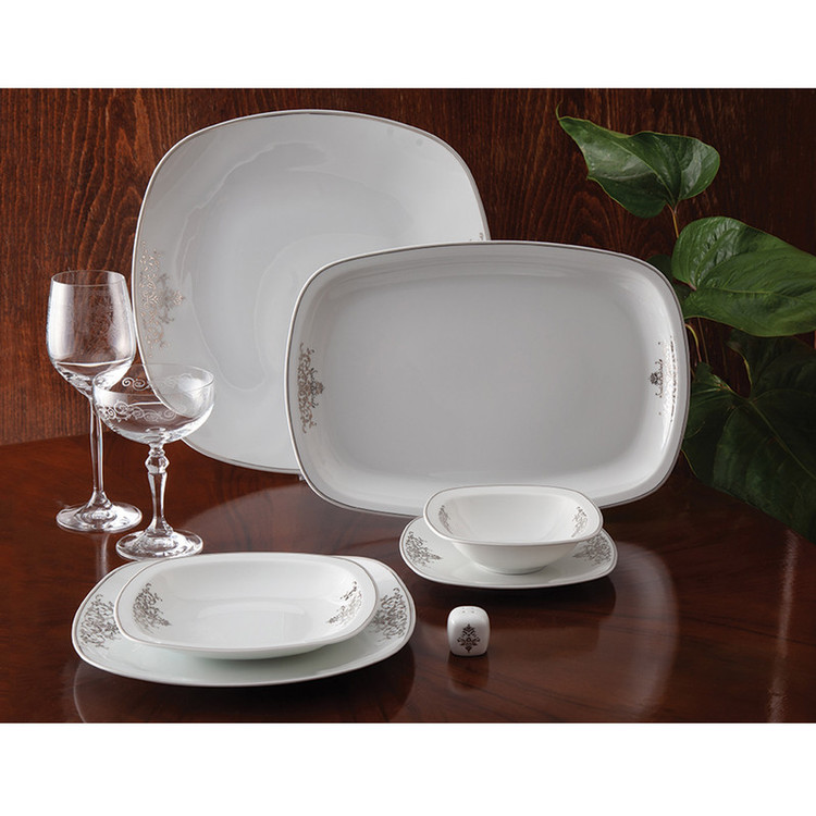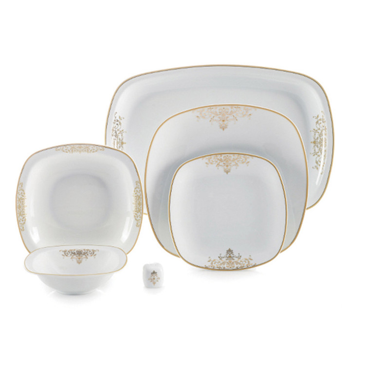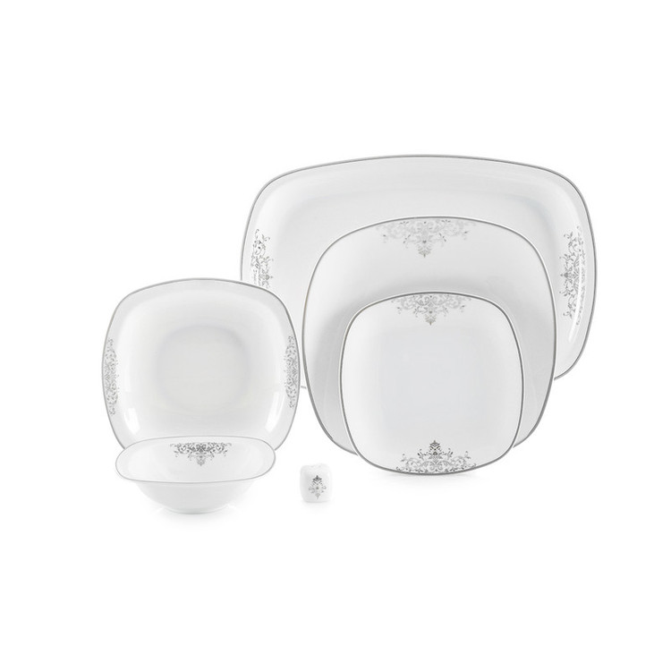 اقلام سرویس: دیس , بشقاب غذاخوری , بشقاب خورشخوری , پیشدستی , نمکپاش و فلفلپاش , پیاله