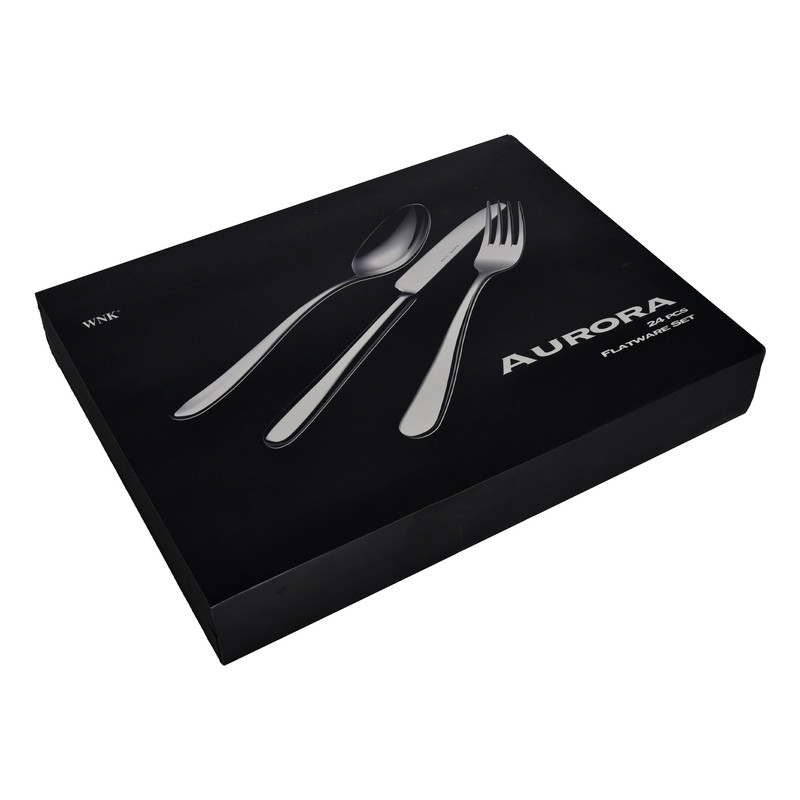 سرویس 24 پارچه AURORA از جنس استیل 18/10 می باشد که مشتمل بر: 6 عدد قاشق غذاخوری ، 6 عدد چنگال غذاخوری ، 6 عدد کارد غذاخوری ، 6عدد قاشق چای خوری می باشد که ابعاد بسته بندی این محصول به طول 41 سانتیمتر ، عرض 31 سانتیمتر و ارتفاع 6 سانتیمتر می باشد که از بهترین متریال ساخته شده است .