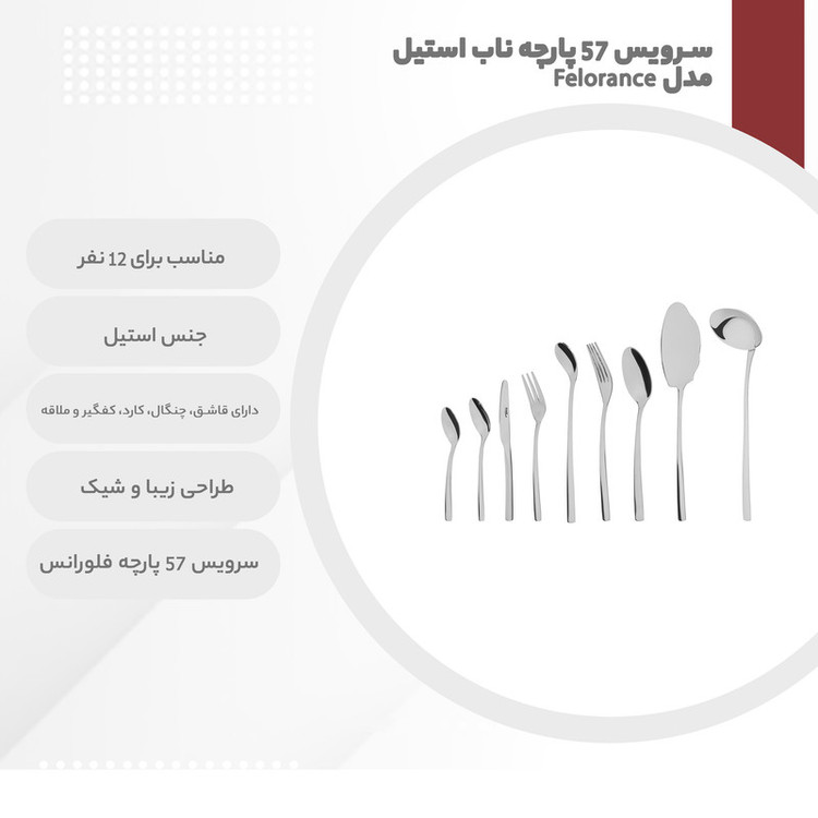 سرویس قاشق و چنگال 57 پارچه ناب استیل مدل Felorance