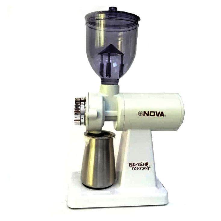 گریندر قهوه نوا طرح جدید با مخزن به روز محصول2021 شرکت نوا بود و دارای 10 درجه بسیار دقیق خردایش میباشد . آسیاب مناسب کافی شاپها و فروشگاهها و خانه میباشد و درجات ترک و انواع اسپرسو و فرنچ را به راحتی و با دقیت زیاد آسیاب میکند. دارای مخزن استیل میباشد که بسیار دقیق بوده و قهوه اسیاب شده به اطراف پرتاب نمیشود. کارکرد دستگاه بدون هیچ لرزشی میباشد و حجم مخزن آن 250 گرم میباشد . مخزن بالای دستگاه برخلاف نمونوهای قدیمی نوا بسیار فیت میباشد. موتور دستگاه برخلاف مدل های N600 و برندهای متفرقه که از آلومینیوم و یا مس ناخالص هستند از مس خالص بوده . در صورت رگلاژ شدن دستگاه کارکرد این دستگاه خیلی یکدست و راحت است و برای رگلاژ میتوان به کلیپهای داخل اینترنت مراجعه کرد . اگه به قهوه خیلی ریز نیاز دارید حتما رگلاژ رو کامل سفت کنید و نگران سایش تیغه نباشید.