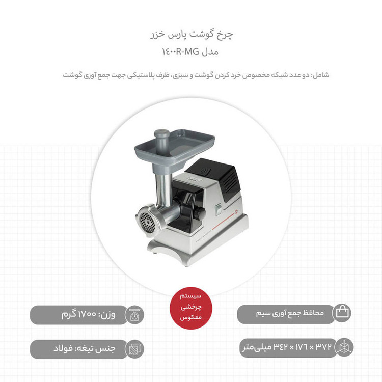چرخ گوشت پارس خزر مدل MG-1400R