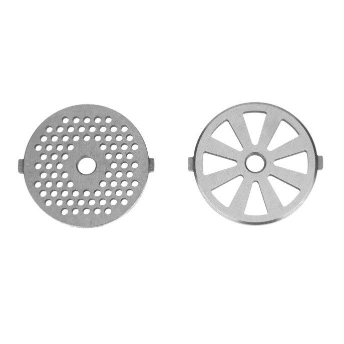 همراه این محصول 3 عدد شبکه های پنجره ای فلزی ضد زنگ کباب ساز و سوسیس ساز عرضه می شود و با آن می توان گوشت را در مدل های مختلف برای تهیه ی غذاهای متنوع چرخ کرد.