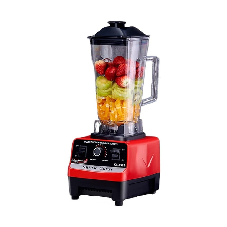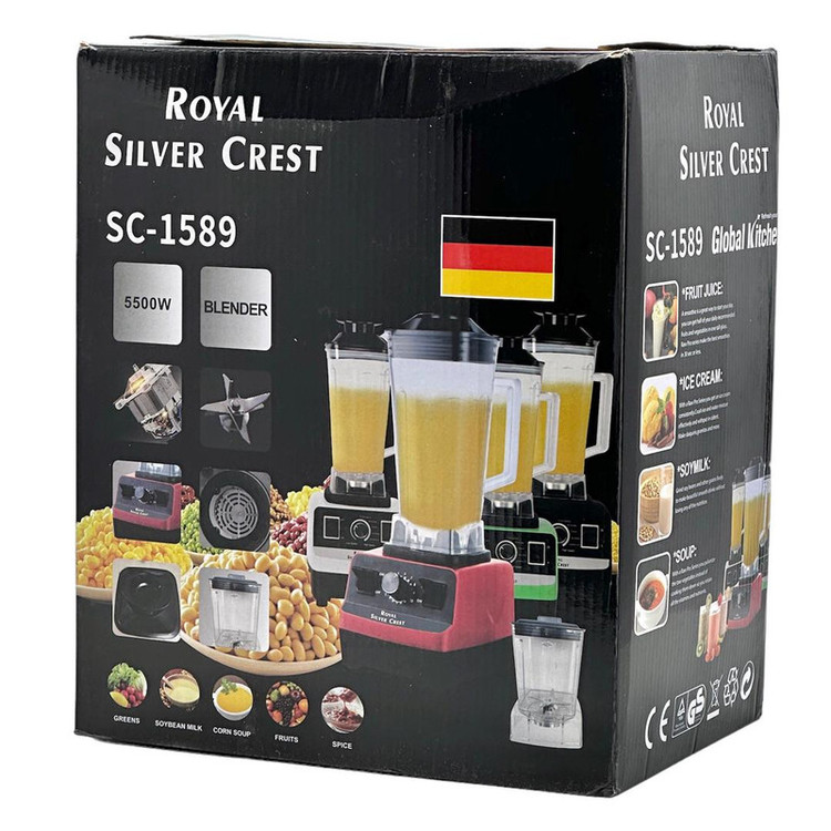 مخلوط کن سیلورکرست مدل SC-1589 از بهترین و پرقدرت ترین مخلوط کن های موجود در بازار می باشد. مخلوط کن با نام بلندر هم شناخته می شود. مخلوط کن سیلور کرست شامل یک پارچ هست که دارای 2 تیغه فولادی که شامل 6 پره می باشد. از بلندر معمولا برای تهیه نوشیدنی ها استفاده میشود و معمولا باید مقداری مایع به همراه میوه و یخ نیز در مخلوط کن ریخته شود. همچنین از مخلوط کن می توان برای میکس و له و یکنواخت کردن همه ی مواد استفاده کرد.مخلوط کن سیلور کرست جهت خرد کردن میوه، سبزیجات، آجیل، یخ، در چند ثانیه است. موتور قوی تایمر دار با عملکرد بالا مناسب برای آبمیوه فروشی، کافی شاپ، کافه ها ، سبزیجات خرد شده و تهیه اسموتی یخ زده در خانه استفاده شود. این مخلوط کن دارای تیغه های با دوام است که توانایی بالا در جهت هم زدن میوه های درشت و سفت را دارد.این مخلوط کن بهترین و جذابترین پوره یخ را ایجاد میکند. درب این مخلوط کن سیلورکرست مدل SC-1589 دارای دریچه شکرپاش است و امکان اضافه کردن شکر و یا دیگر مواد را، در حین کار با دستگاه ممکن می سازد. این دستگاه به شما این اجازه رو میده که از گزینه “پالس” استفاده کنید. به این مفهوم که مواد جامد رو در حد مورد نیاز خرد و یا پودر میکنید. با پالس زدن شما میزان خورد کردن مواد رو تحت کنترل دارید و یا اینکه مواد نیمه جامد رو در حد مورد نیاز پوره و یا له میکنید. مخلوط کن سیلور کرست SC-1589 یک دستگاه چند منظوره با قابلیت آسیاب و مخلوط کن می باشد که قابلیت آسیاب و مخلوط کردن انواع مواد غذایی قابل خرد شدن اعم از سبزیجات، میوه، ادویه و… را دارد. این دستگاه به یک موتور قدرتمند با توان بالا مجهز است که قابلیت چرخش با سرعت 32000 دور در دقیقه را دارد که به آسانی و در کمترین زمان مواد مورد نطر را مخلوط کرده و آن را برای شما آماده می کند. مدل 1589 قابلیت تنظیم سرعت را دارد و با استفاده از دکمه گرداننده ای که بر روی دستگاه تعبیه شده بسته به نوع مواد غذایی می توانید سرعت آن را تنظیم کنید و همچنین می توانید سرعت موتور را بر روی دور آهسته و یا دورسرعت بالا قرار دهید. مخلوط کن سیلور کرست 1589 دارای تیغه هایی از جنس استیل ضد زنگ است که بسیار محکم و با دوام طراحی شده و حتی قابلیت خرد کردن یخ را نیز دارد. جنس کاسه مخلوط کن از شیشه پلی کربنات ساخته شده